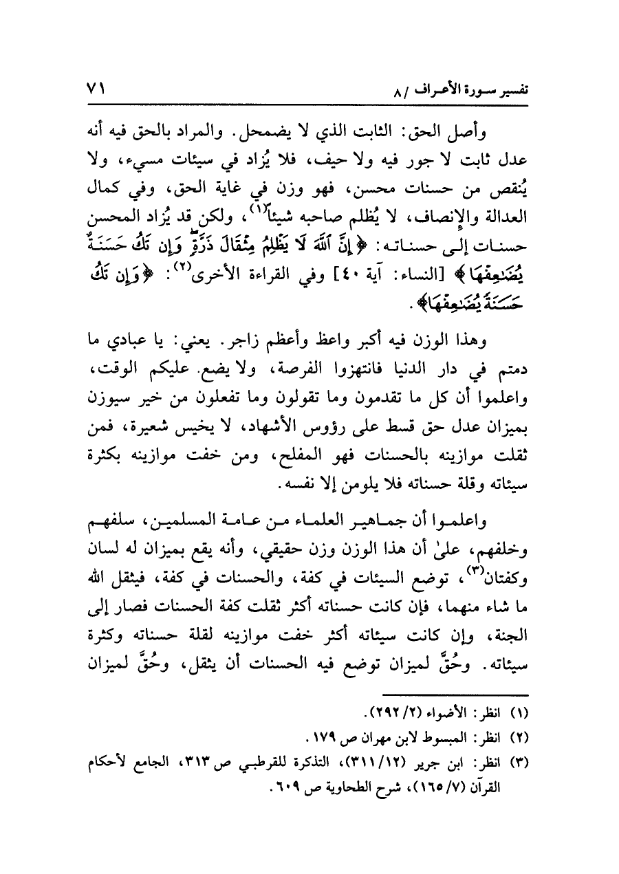 (¬٣) انظر: ابن جرير (١٢/ ٣١١)، التذكرة للقرطبي ص٣١٣، الجامع لأحكام القرآن (٧/ ١٦٥)، شرح الطحاوية ص٦٠٩.