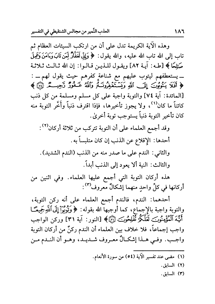 هذه أركان التوبة التي أجمع عليها العلماء. وفي اثنين من أركانها في كلِّ واحد منهما إشكالٌ معروف (¬٣):