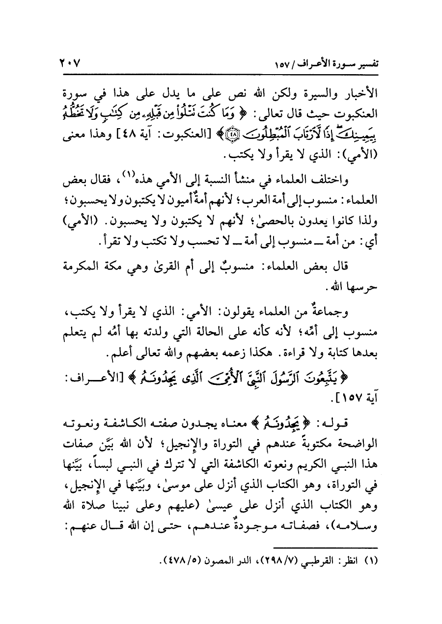 {يَتَّبِعُونَ الرَّسُولَ النَّبِيَّ الأُمِّيَّ الَّذِي يَجِدُونَهُ} [الأعراف: آية ١٥٧].
