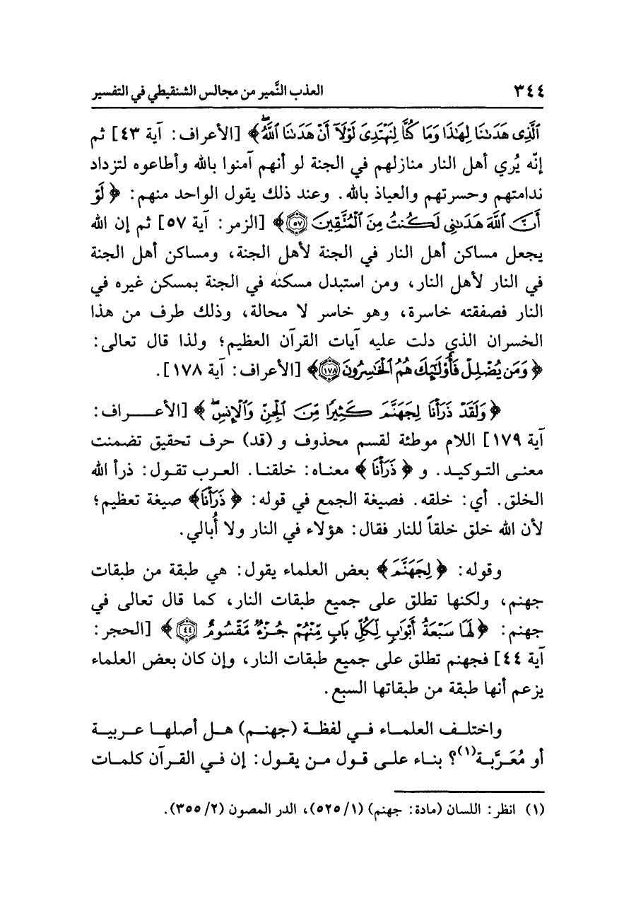 (¬١) انظر: اللسان (مادة: جهنم) (١/ ٥٢٥) , الدر المصون (٢/ ٣٥٥).