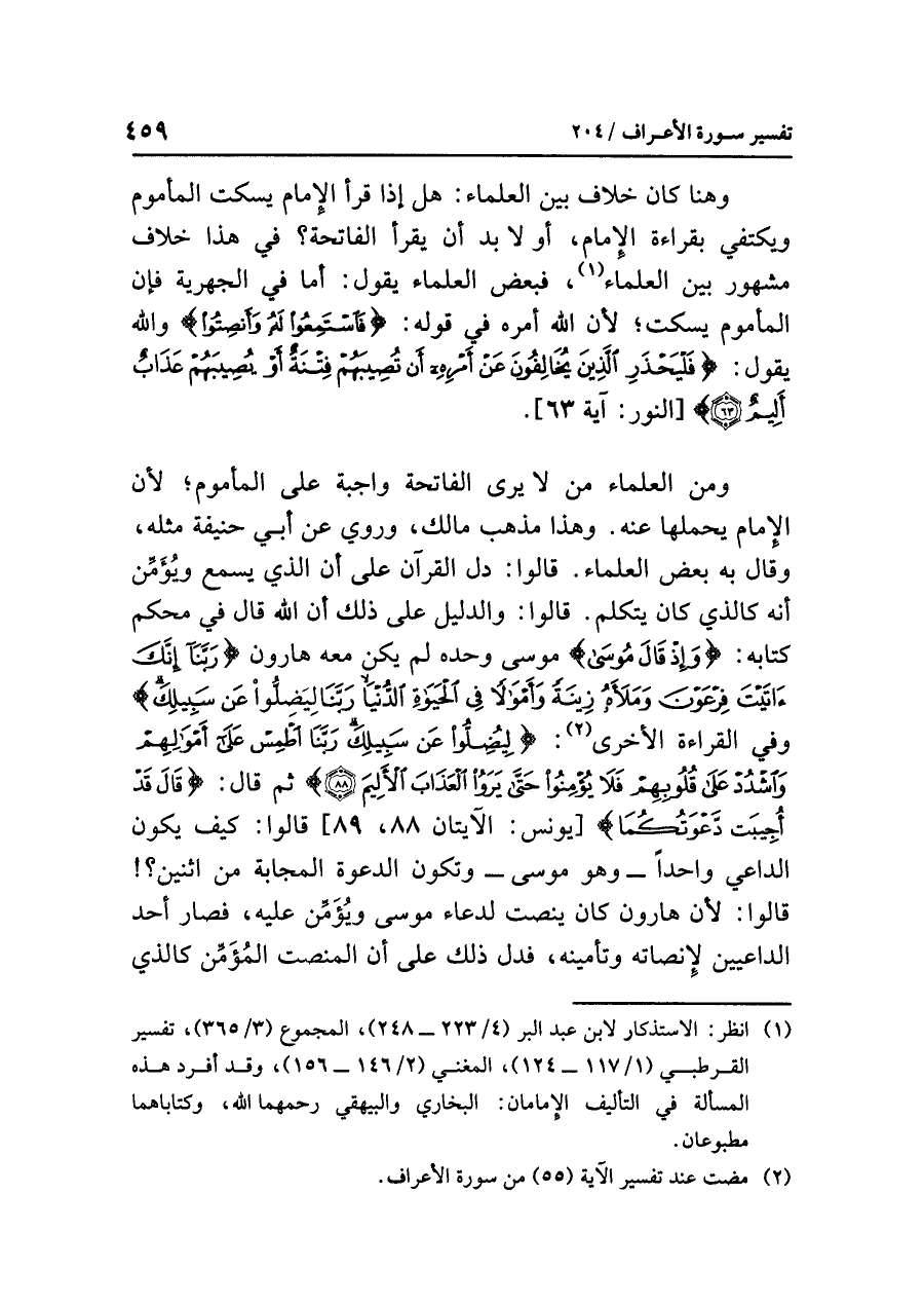 (¬١) انظر: الاستذكار لابن عبد البر (٤/ ٢٢٣ - ٢٤٨)، المجموع (٣/ ٣٦٥)، تفسير القرطبي (١/ ١١٧ - ١٢٤)، المغني (٢/ ١٤٦ - ١٥٦) وقد أفرد هذه المسألة في التأليف الإمامان: البخاري والبيهقي رحمهما الله، وكتاباهما مطبوعان.