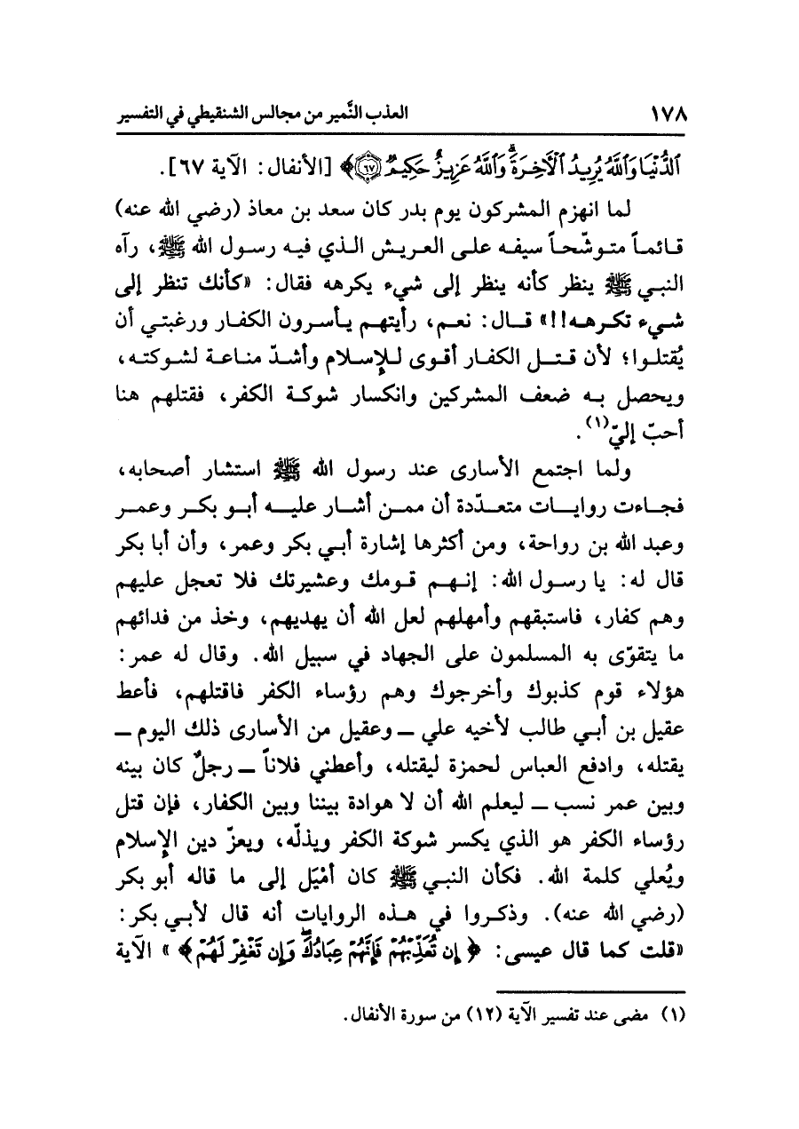 الدُّنْيَا وَاللَّهُ يُرِيدُ الآخِرَةَ وَاللَّهُ عَزِيزٌ حَكِيمٌ (٦٧)} [الأنفال: الآية ٦٧].