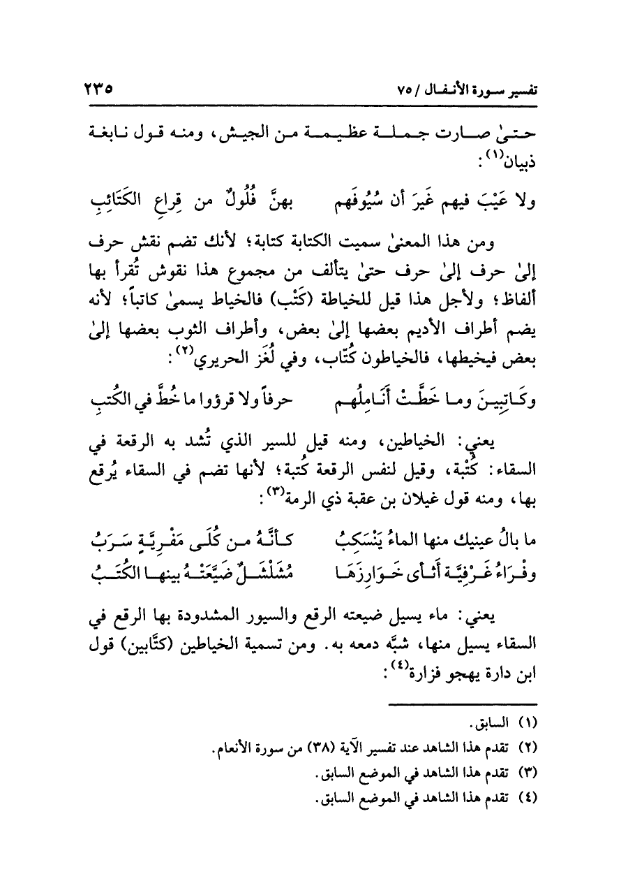 (¬٢) تقدم هذا الشاهد عد تفسير الآية (٣٨) من سورة الأنعام.