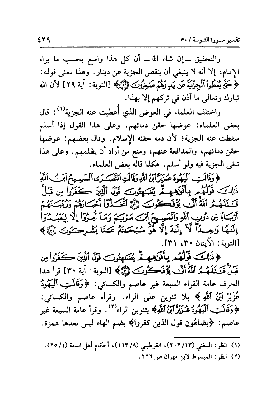 (¬١) انظر: المغني (١٣/ ٢٠٢)، القرطبي (٨/ ١١٣)، أحكام أهل الذمة (١/ ٢٥).