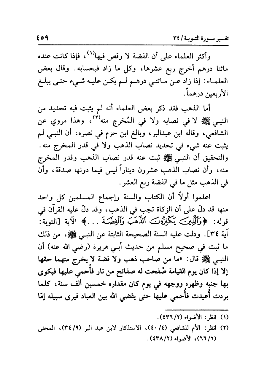 (¬٢) انظر: الأم للشافعي (٤/ ٤٠)، الاستذكار لابن عبد البر (٩/ ٣٤)، المحلى (٦/ ٦٦)، الأضواء (٢/ ٤٣٨).