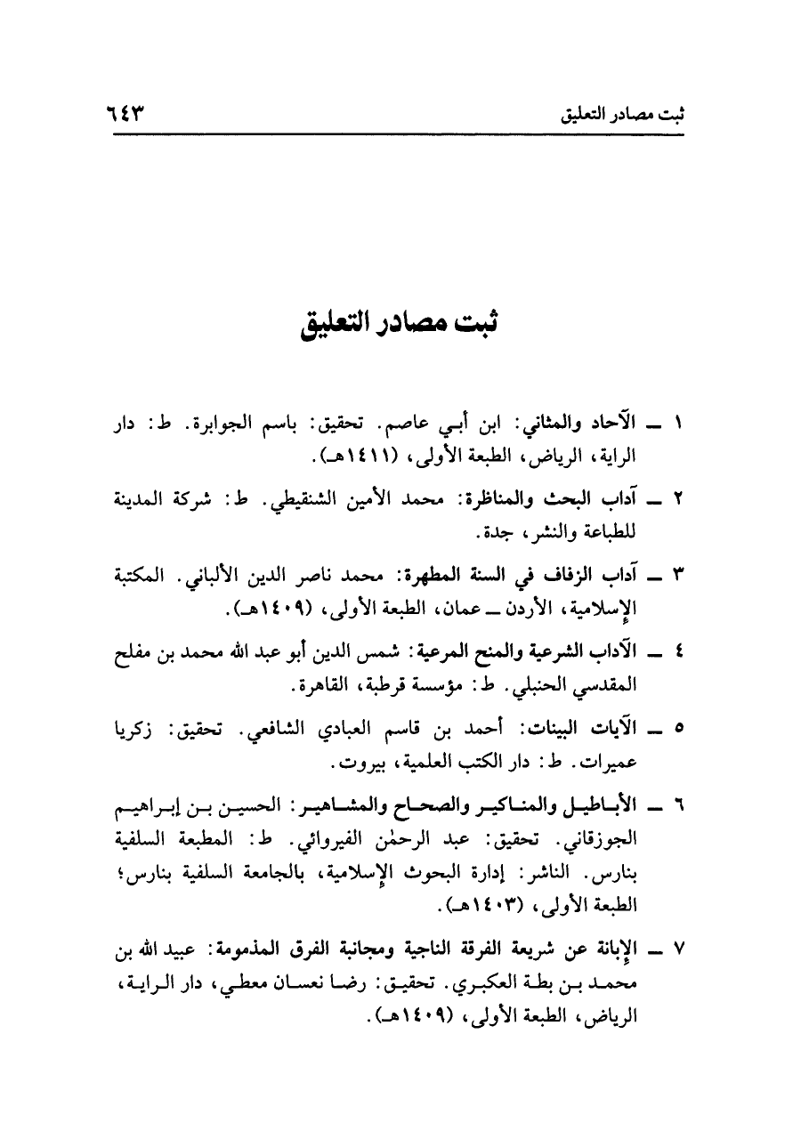 - آداب الزفاف في السنة المطهرة: محمد ناصر الدين الألباني. المكتبة الإسلامية، الأردن - عمان، الطبعة الأولى، (١٤٠٩ هـ).