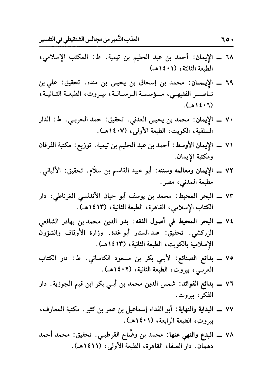 - الإيمان: أحمد بن عبد الحليم بن تيمية. ط: المكتب الإسلامي، الطبعة الثالثة، (١٤٠١ هـ).