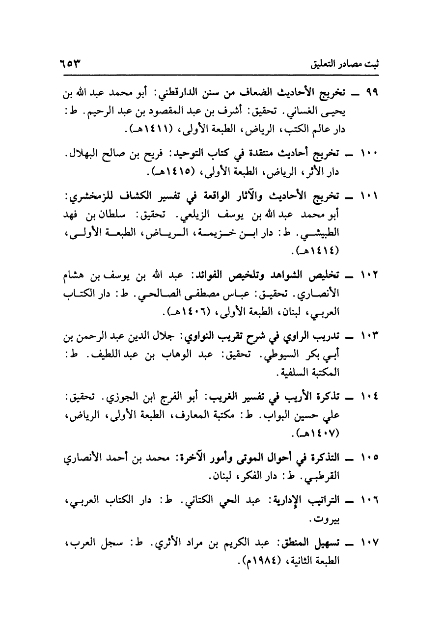 - تخريج أحاديث منتقدة في كتاب التوحيد: فريح بن صالح البهلال. دار الأثر، الرياض، الطبعة الأولى، (١٤١٥ هـ).