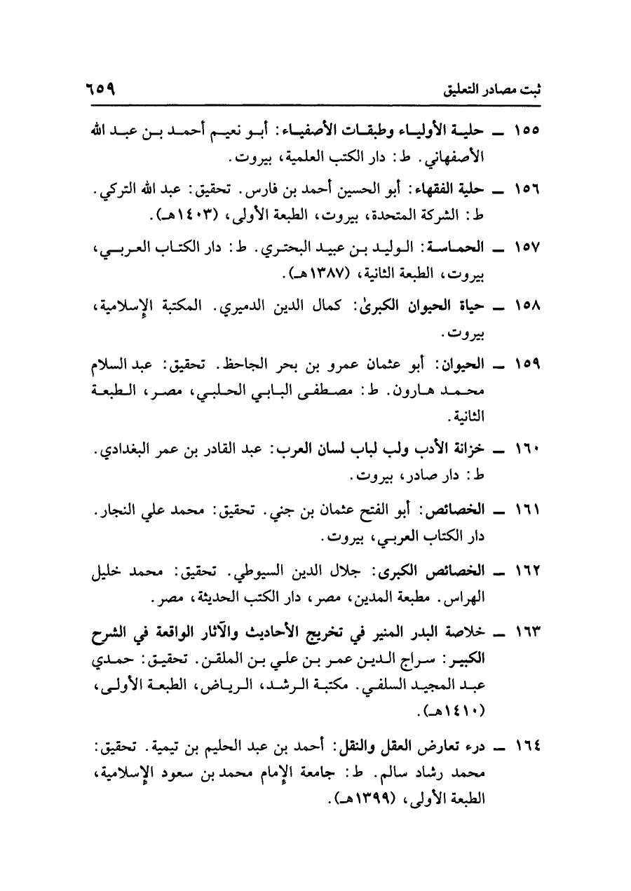 - خزانة الأدب ولب لباب لسان العرب: عبد القادر بن عمر البغدادي. ط: دار صادر، بيروت.
