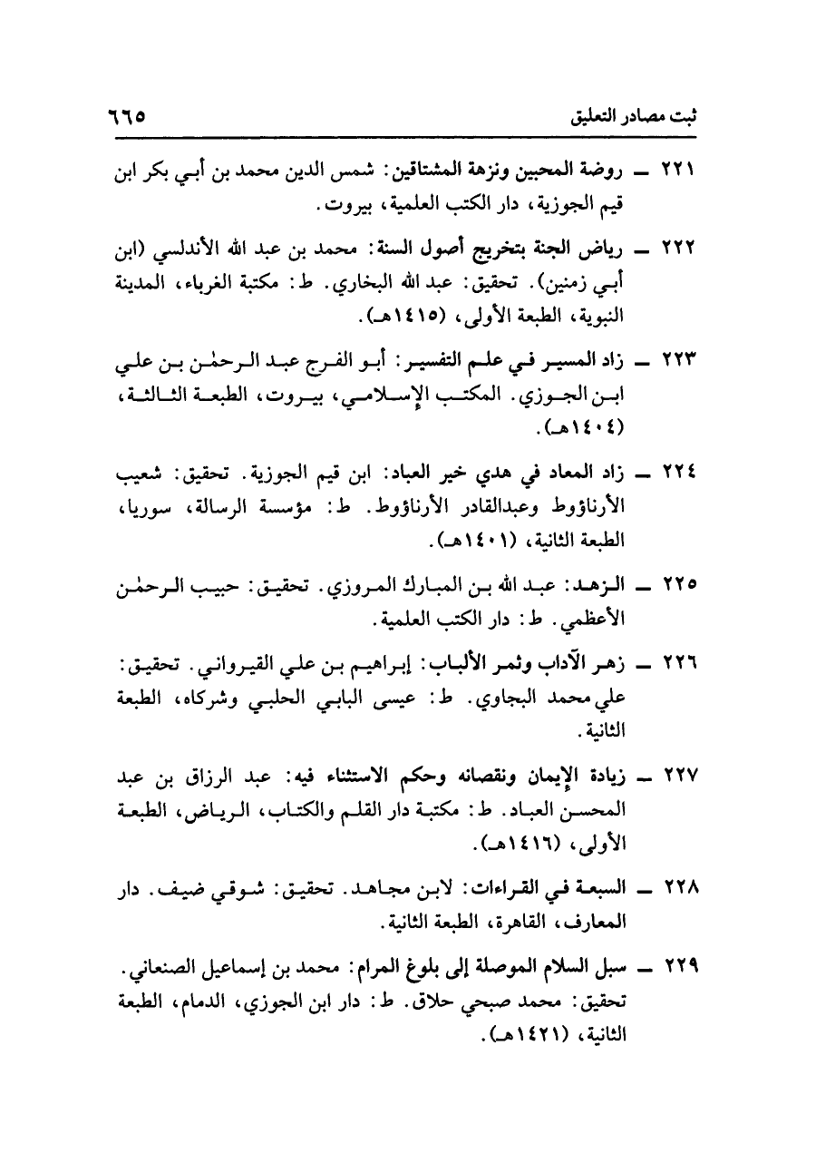 - روضة الناظر وجنة المناظر: موفق الدِّين بن قدامة المقدسي. وشرحها: نزهة الخاطر العاطر: عبد القادر بن أحمد بن مصطفى بدران. مكتبة المعارف, الرياض, الطبعة الثانية, (١٤٠٤هـ).