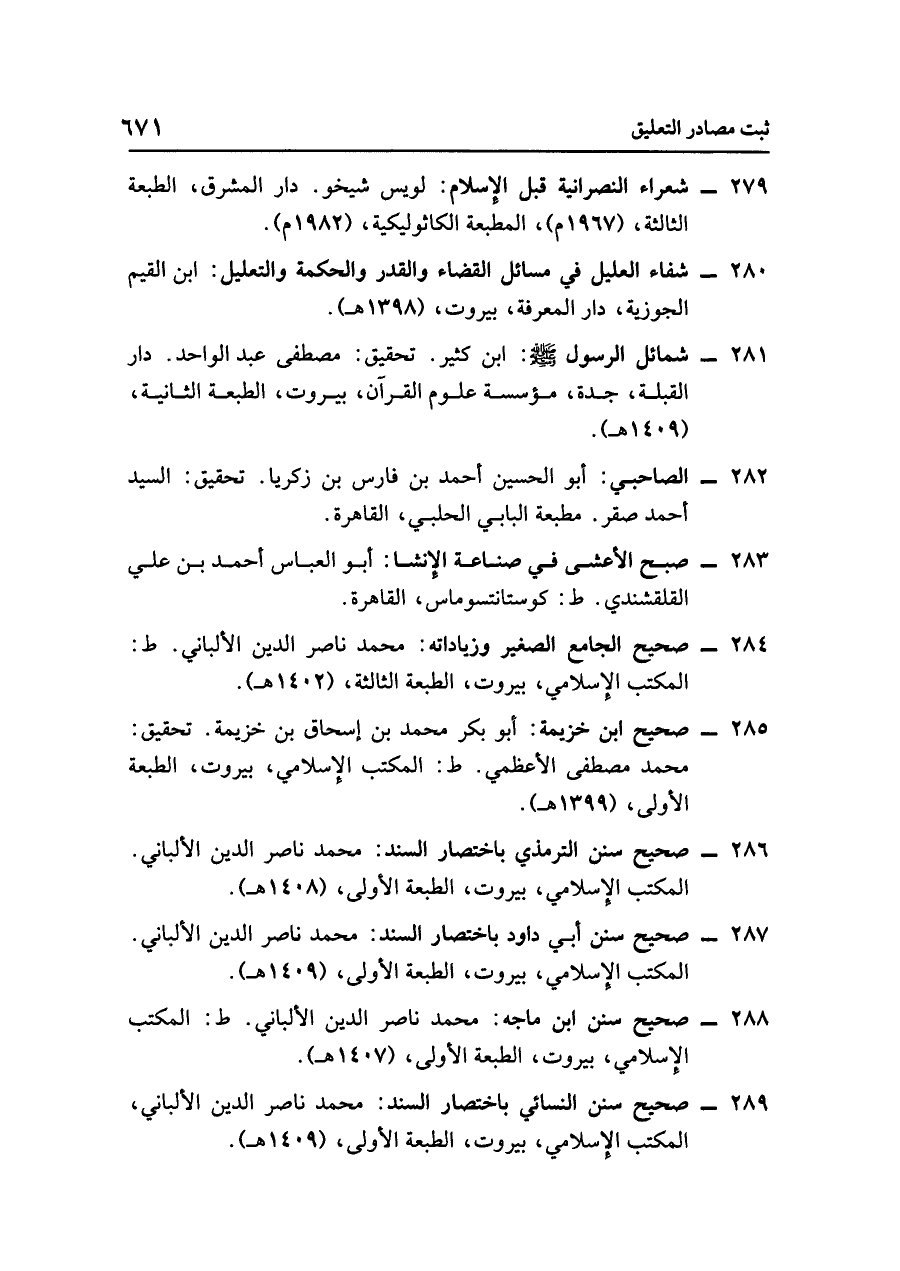 - صحيح سنن الترمذي باختصار السند: محمد ناصر الدين الألباني. المكتب الإسلامي، بيروت، الطبعة الأولى، (١٤٠٨ هـ).