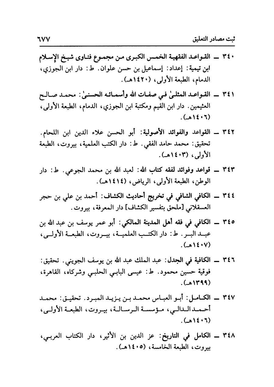 - القواعد والفوائد الأصولية: أبو الحسن علاء الدين ابن اللحام. تحقيق: محمد حامد الفقي. ط: دار الكتب العلمية، بيروت، الطبعة الأولى، (١٤٠٣ هـ).