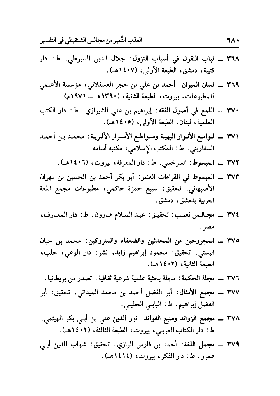 - لباب النقول في أسباب النزول: جلال الدين السيوطي. ط: دار قتيبة، دمشق، الطبعة الأولى، (١٤٠٧ هـ).
