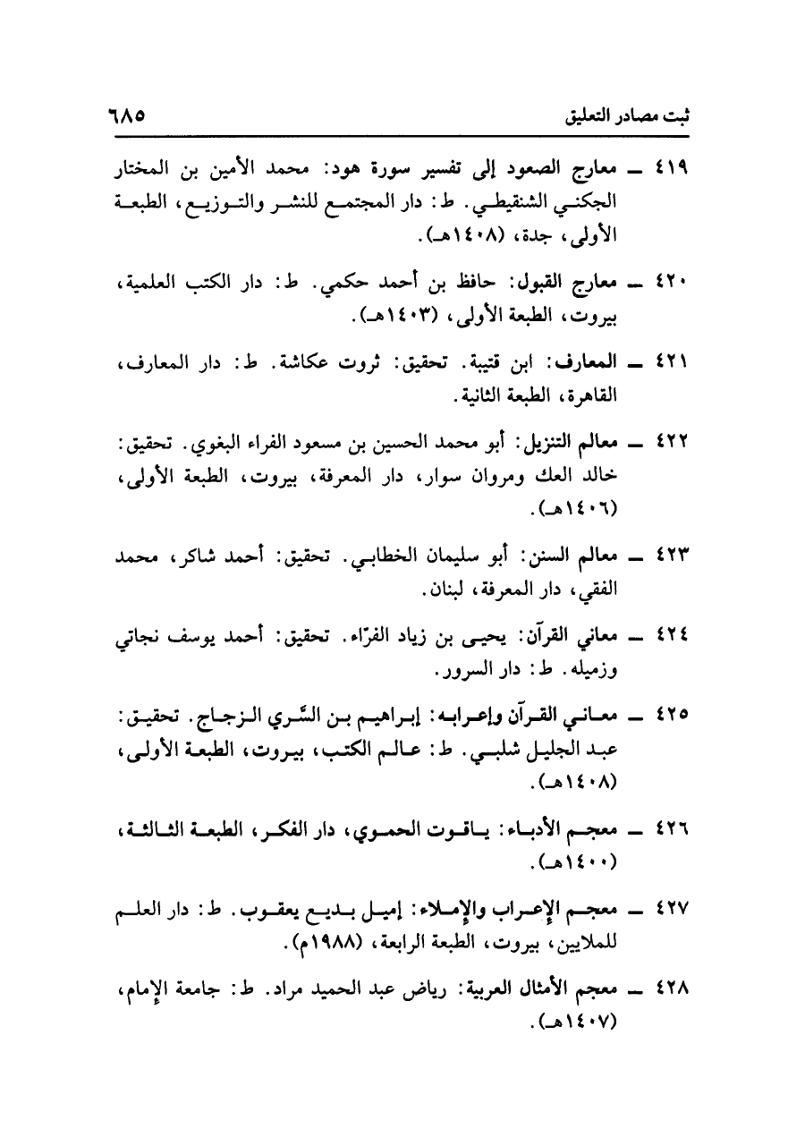 - معارج الصعود إلى تفسير سورة هود: محمد الأمين بن المختار الجكني الشنقيطي. ط: دار المجتمع للنشر والتوزيع، الطبعة الأولى، جدة، (١٤٠٨ هـ).