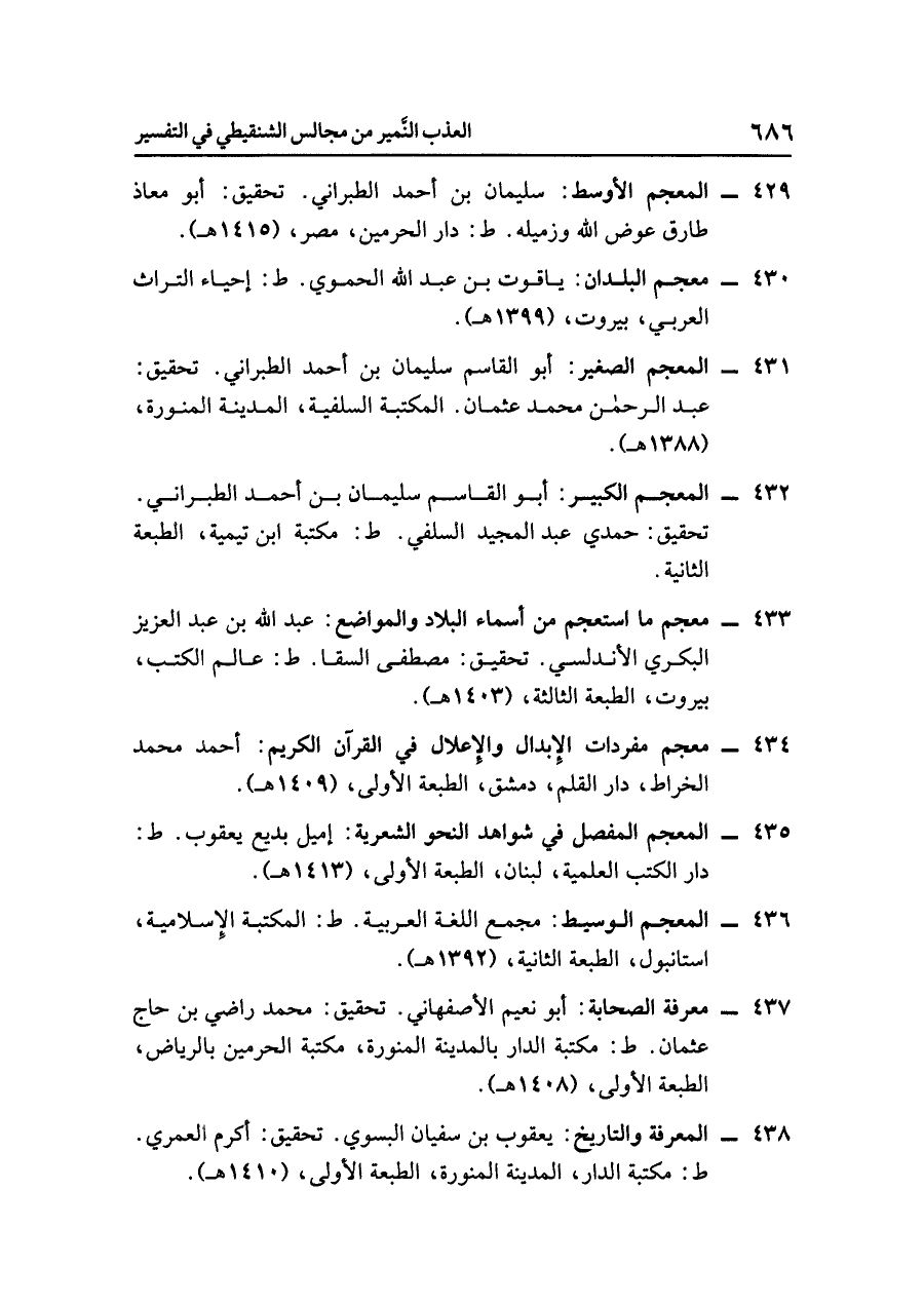 - المعجم الأوسط: سليمان بن أحمد الطبراني. تحقيق: أبو معاذ طارق عوض الله وزميله. ط: دار الحرمين، مصر، (١٤١٥ هـ).