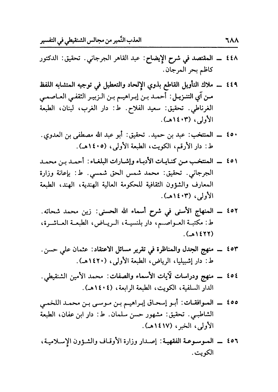 - منهج ودراسات لآيات الأسماء والصفات: محمد الأمين الشنقيطي. الدار السلفية، الكويت، الطبعة الرابعة، (١٤٠٤ هـ).