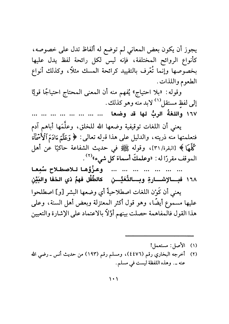 ١٦٧ - واللغةُ الربُّ لها قد وضعا ... . . . . . . . . . . . . .