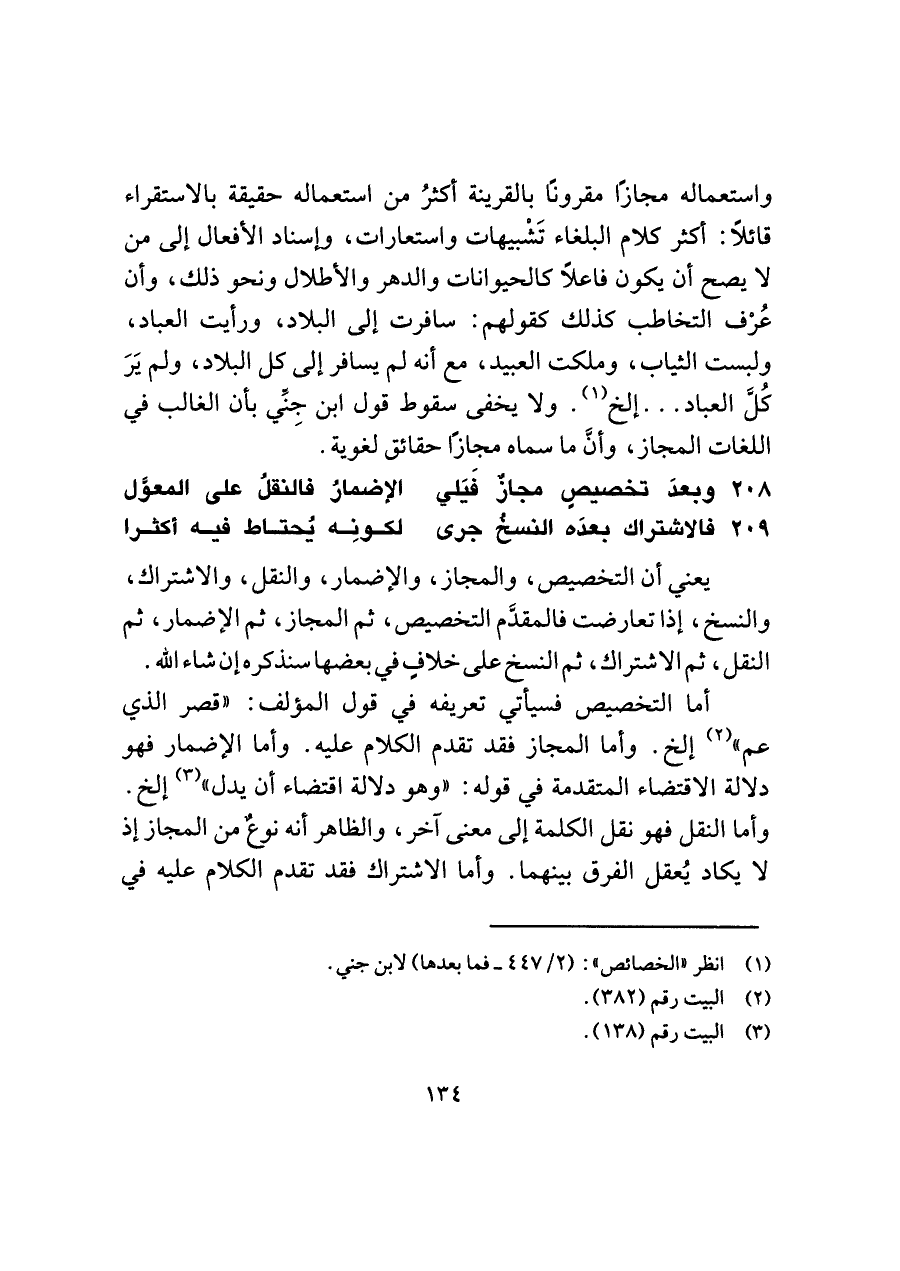 ٢٠٨ - وبعدَ تخصيصٍ مجازٌ فَيَلي ... الإضمارُ فالنقلُ على المعوَّل