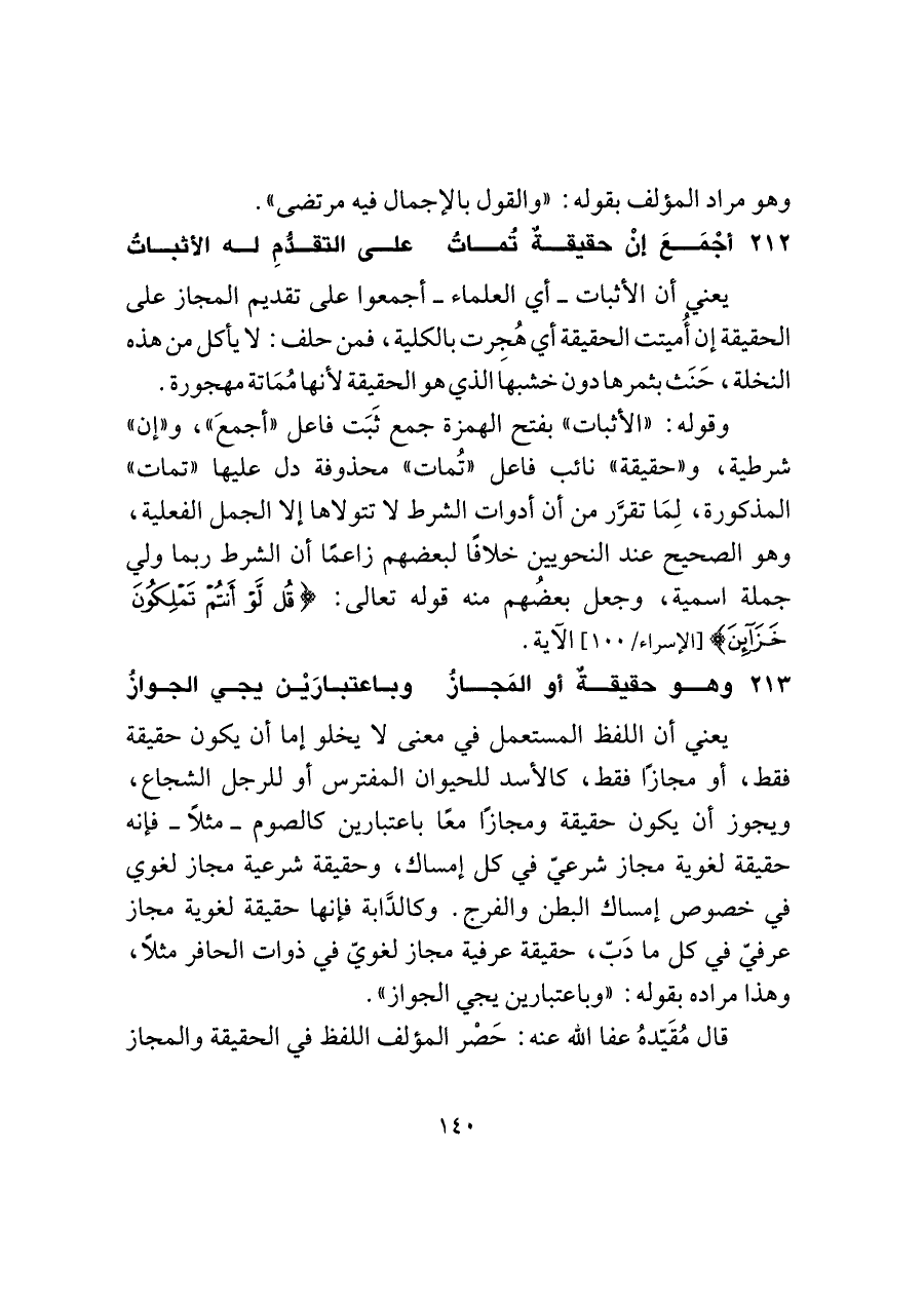 ٢١٣ - وهو حقيقةٌ أو المَجازُ ... وباعتبارَيْن يجي الجوازُ