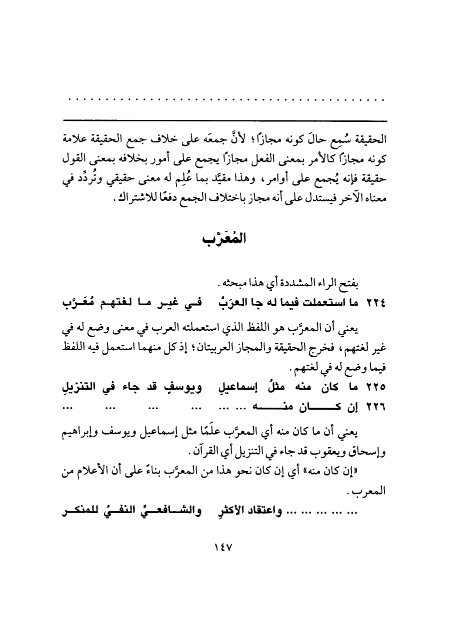 ٢٢٤ - ما استعملت فيما له جا العرَبُ ... في غير ما لغتهم مُعَرَّب