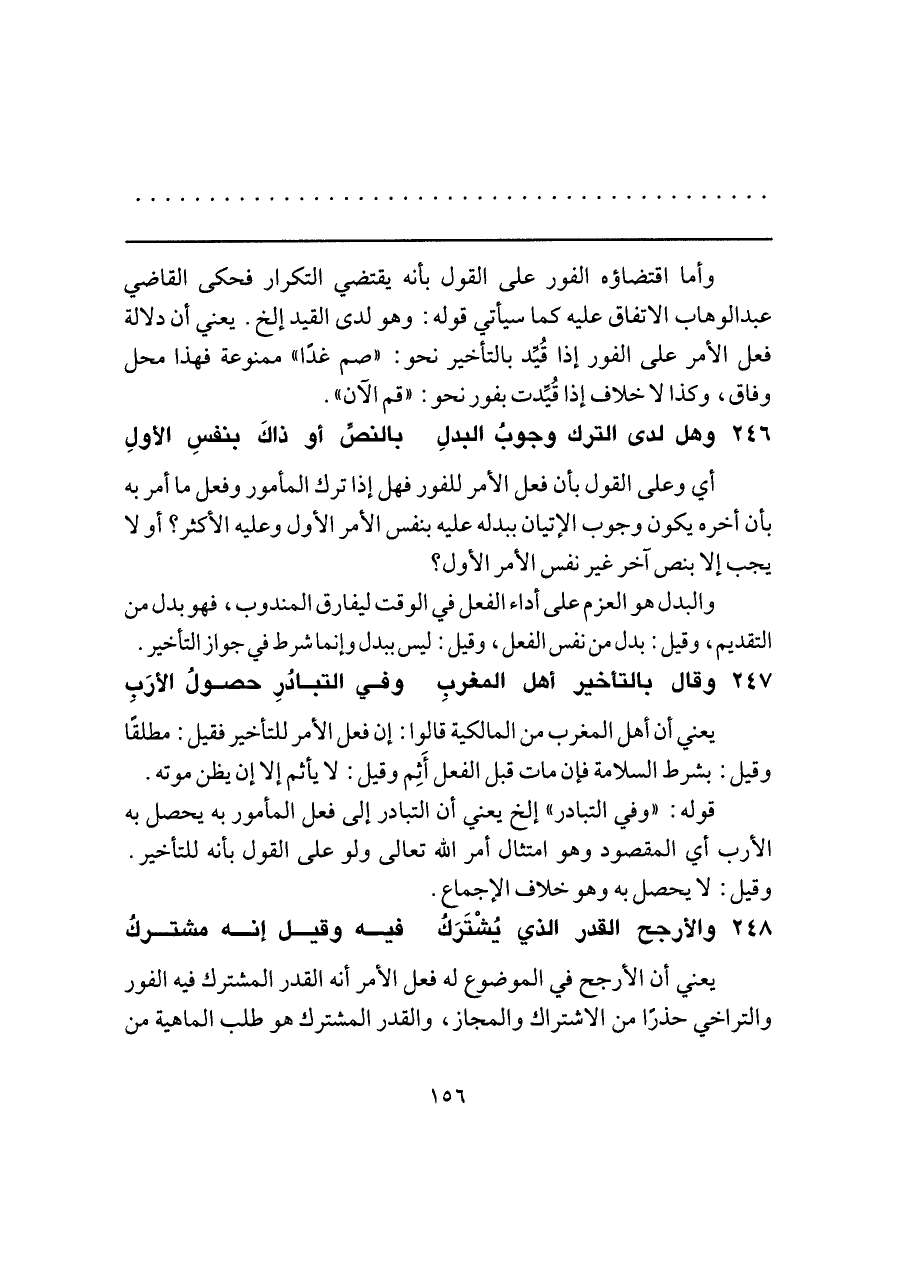 ٢٤٧ - وقال بالتأخير أهل المغربِ ... وفي التبادُرِ حصولُ الأرَبِ