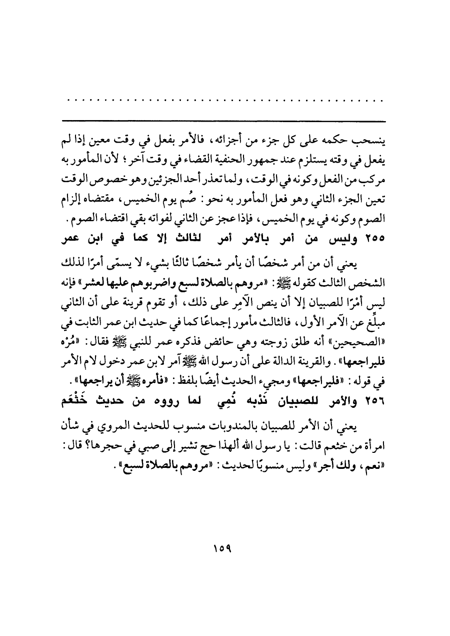 ٢٥٦ - والأمر للصبيان نَدْبه نُمِي ... لما رووه من حديث خَثْعَم