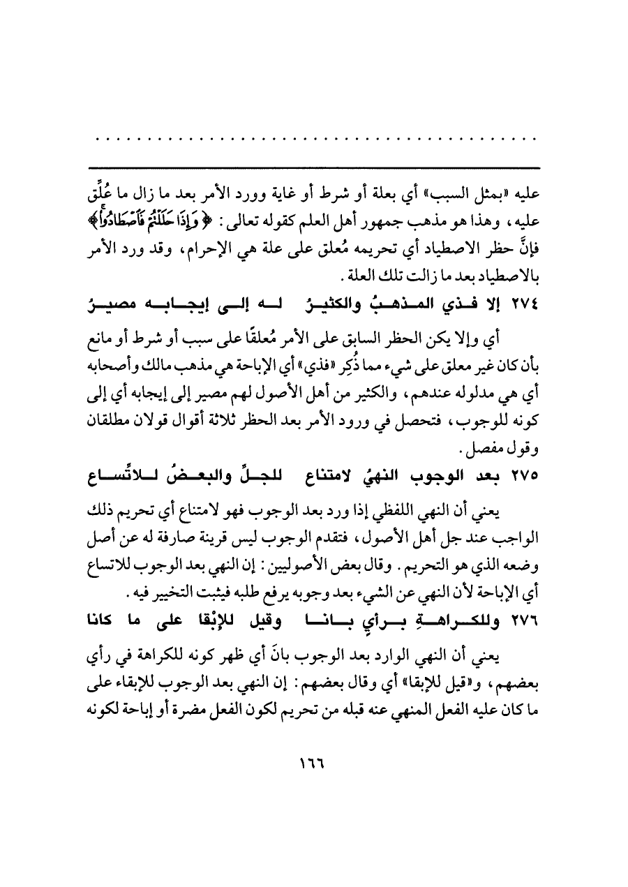 ٢٧٥ - بعد الوجوب النهيُ لامتناع ... للجلِّ والبعضُ للاتِّساع
