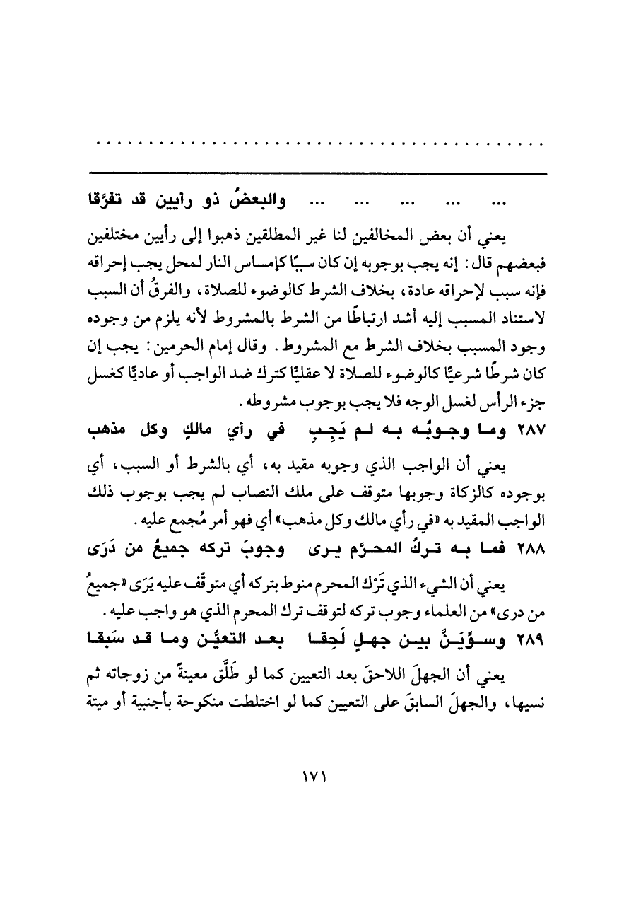 ٢٨٧ - وما وجوبُه به لم يَجِبِ ... في رأي مالكٍ وكل مذهب