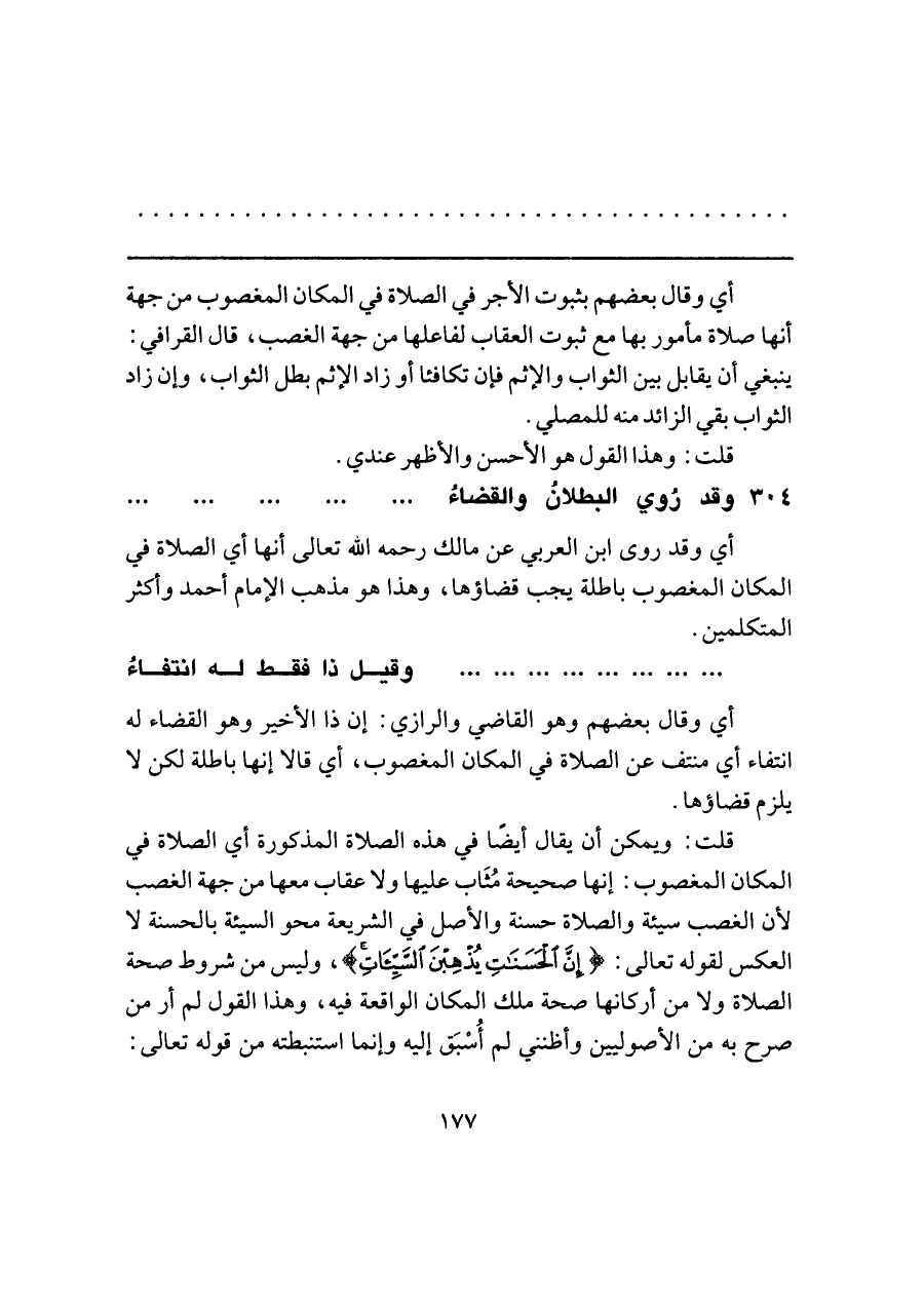 ٣٠٤ - وقد رُوي البطلانُ والقضاءُ ... . . . . . . . . . . . . .