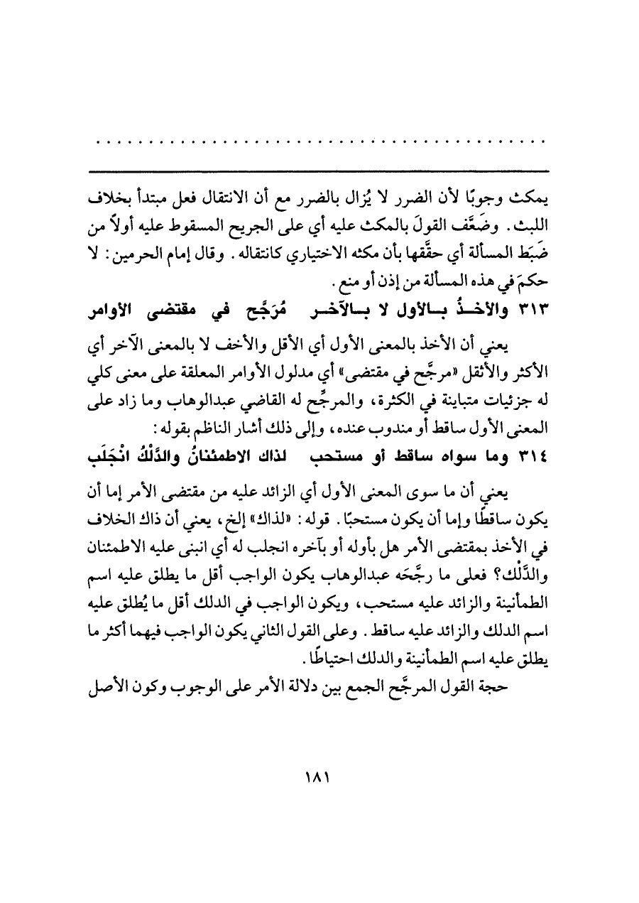 ٣١٣ - والأخذُ بالأول لا بالآخر ... مُرَجَّح في مقتضى الأوامر