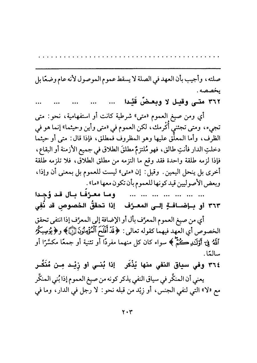 ٣٦٣ - أو بإضافةٍ إلى المعرَّف ... إذا تحقق الخصوصِ قد نُفِي