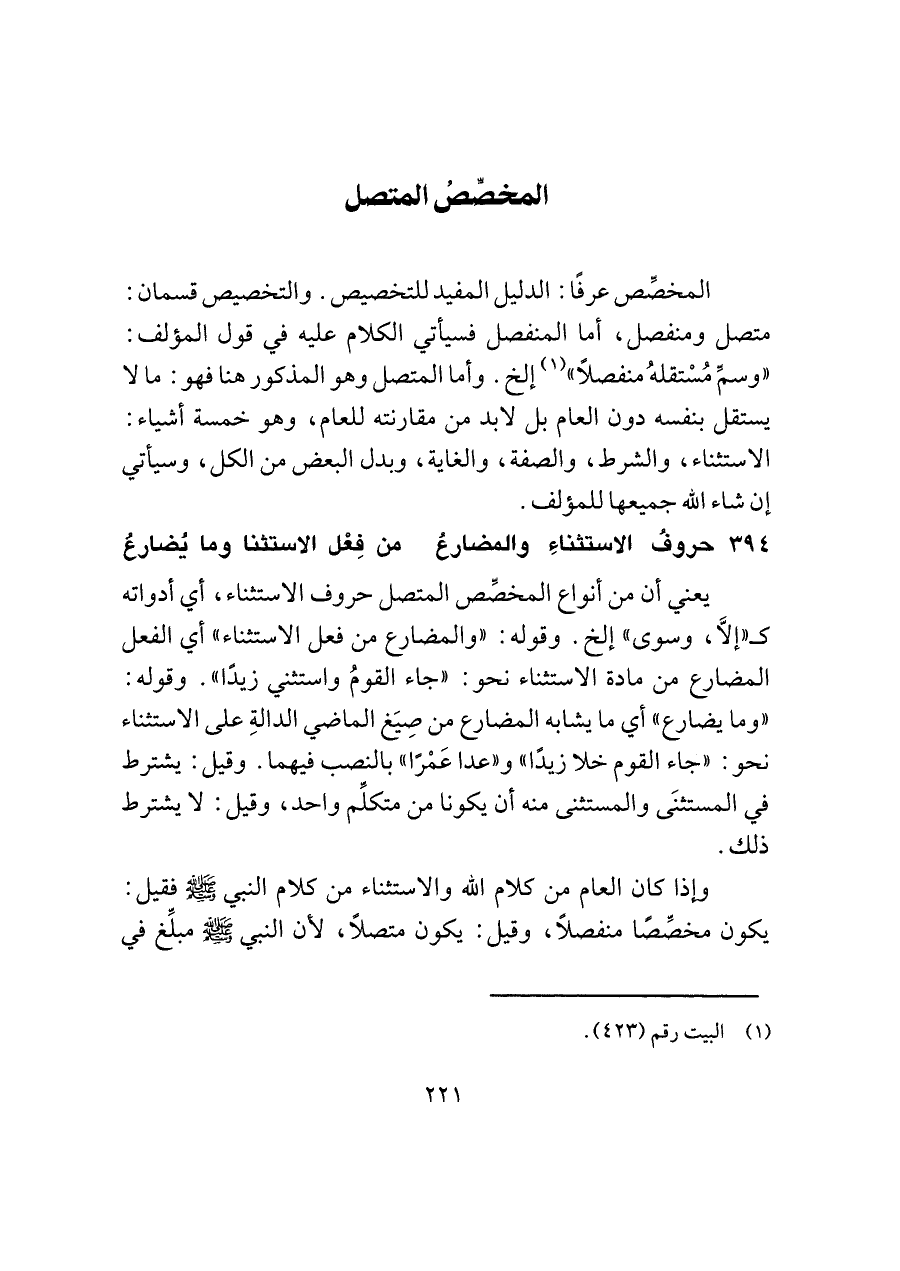 ٣٩٤ - حروفُ الاستثناءِ والمضارعُ ... من فِعْل الاستثنا وما يُضارعُ