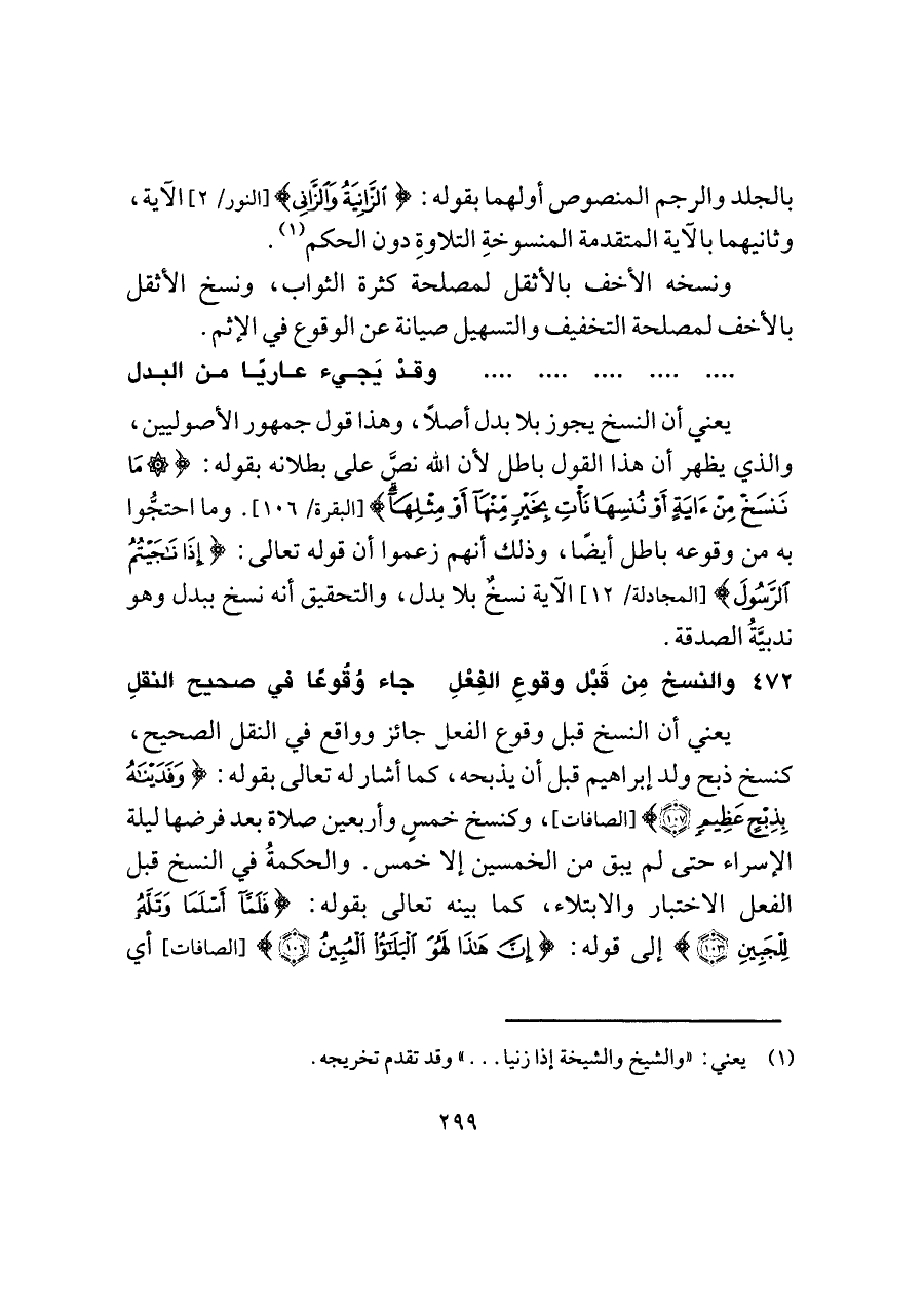٤٧٢ - والنسخ مِن قَبْل وقوعِ الفِعْلِ ... جاء وُقوعًا في صحيح النقلِ