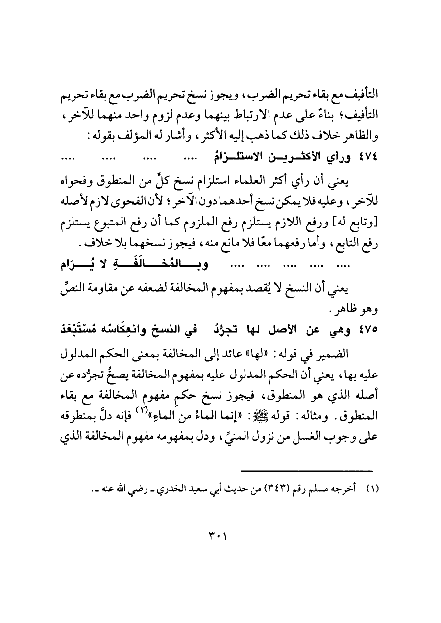 ٤٧٤ - ورأي الأكثرين الاستلزامُ ... . . . . . . . . . . . .