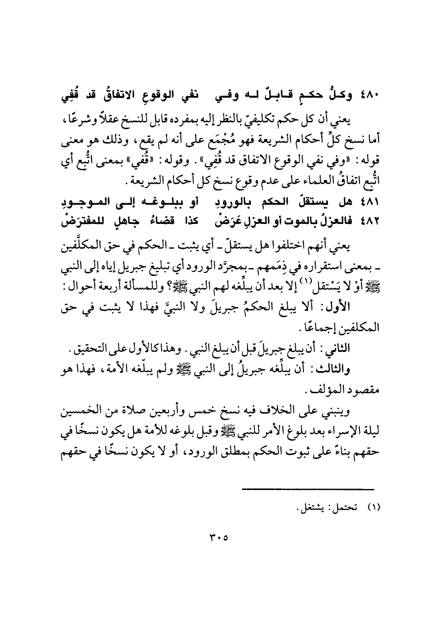 يعني أنهم اختلفوا هل يستقلّ -أي يثبت- الحكم في حق المكلَّفين -بمعنى استقراره في ذِمَمهم- بمجرَّد الورود أي تبليغ جبريل إياه إلى النبي -صلى اللَّه عليه وسلم- أوْ لا يَسْتقل (¬١) إلا بعد أن يبلِّغه لهم النبي -صلى اللَّه عليه وسلم-؟ وللمسألة أربعة أحوال: