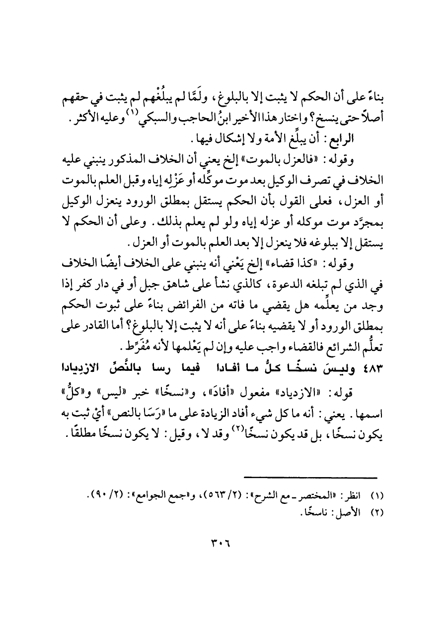 ٤٨٣ - وليسَ نسخًا كلُّ ما أفادا ... فيما رسا بالنَّصِّ الازدِيادا