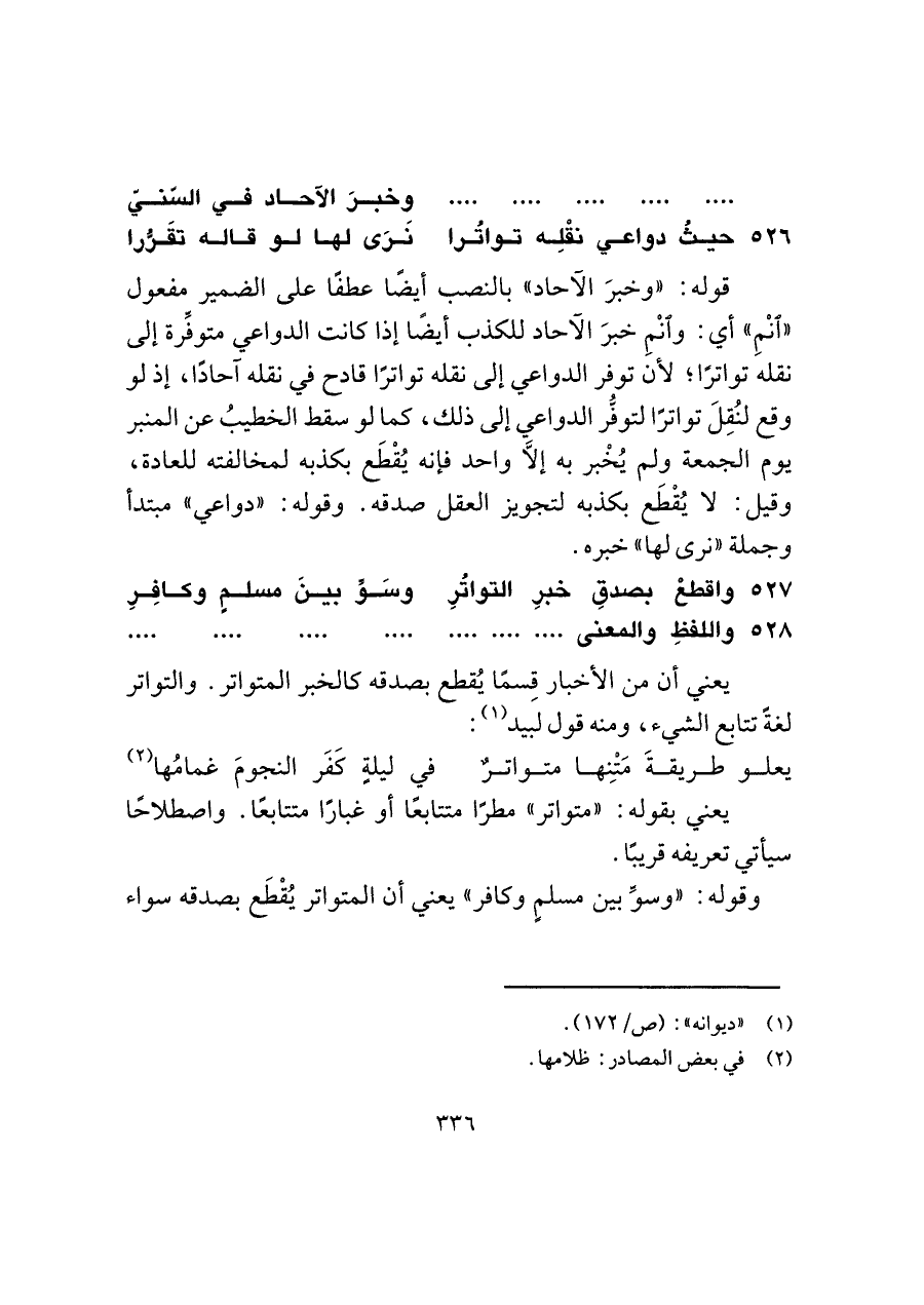 ٥٢٦ - حيثُ دواعي نقْلِه تواتُرا ... نَرَى لها لو قاله تقَرُّرا