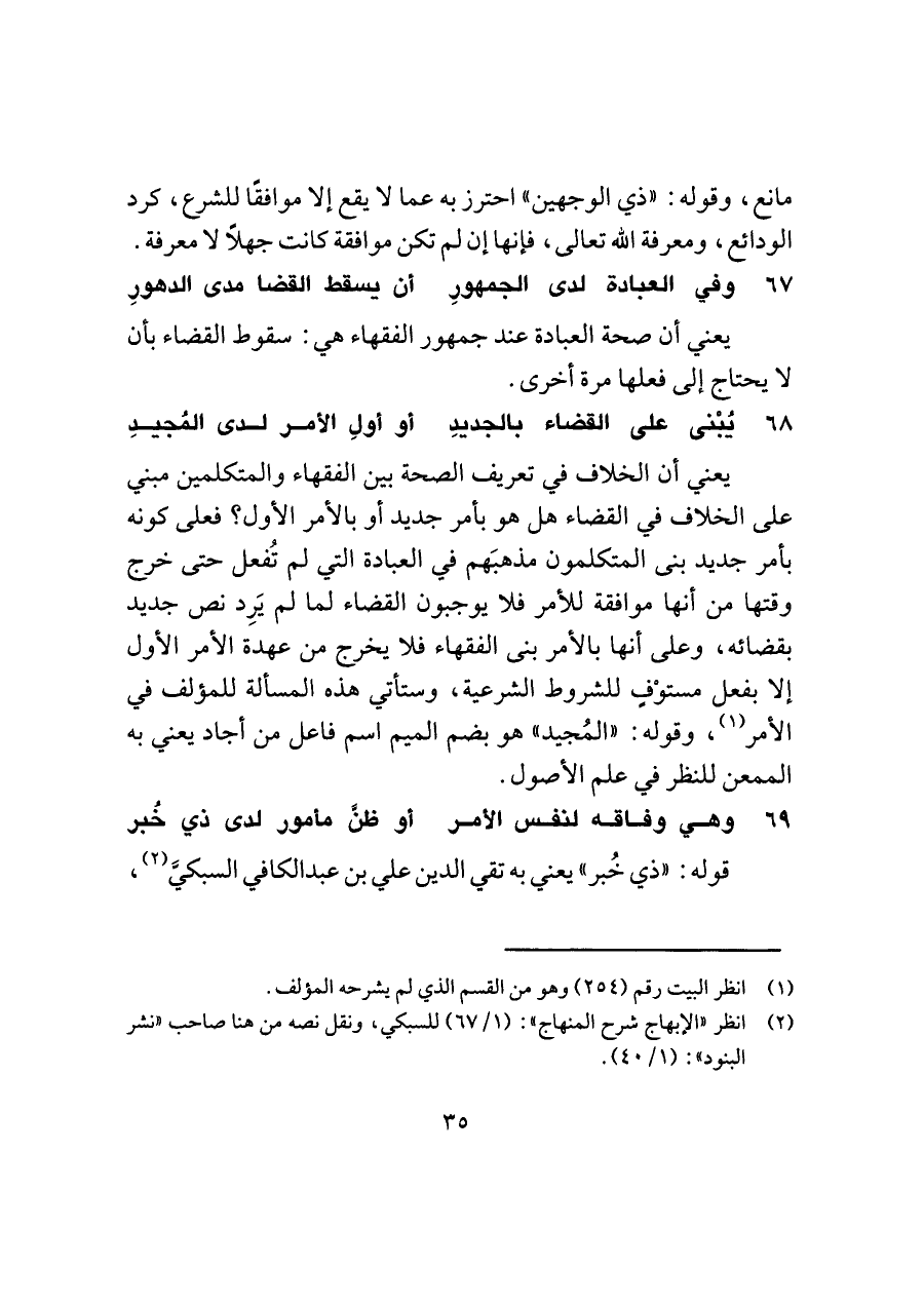 (¬٢) انظر "الإبهاج شرح المنهاج": (١/ ٦٧) للسبكي، ونقل نصه من هنا صاحب "نشر البنود": (١/ ٤٥).