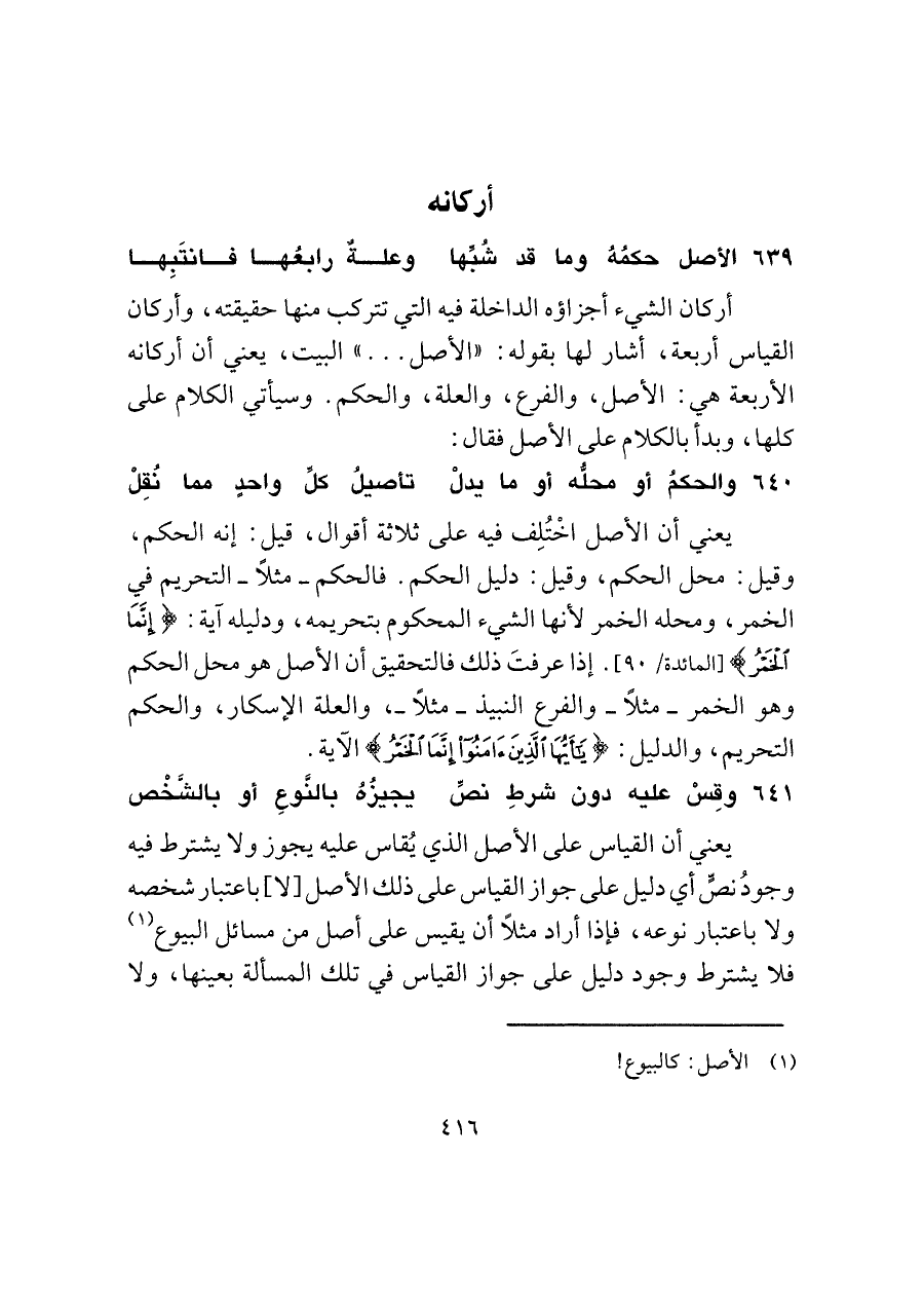 ٦٣٩ - الأصل حكمُهُ وما قد شُبِّها ... وعلةٌ رابعُها فانتَبِها