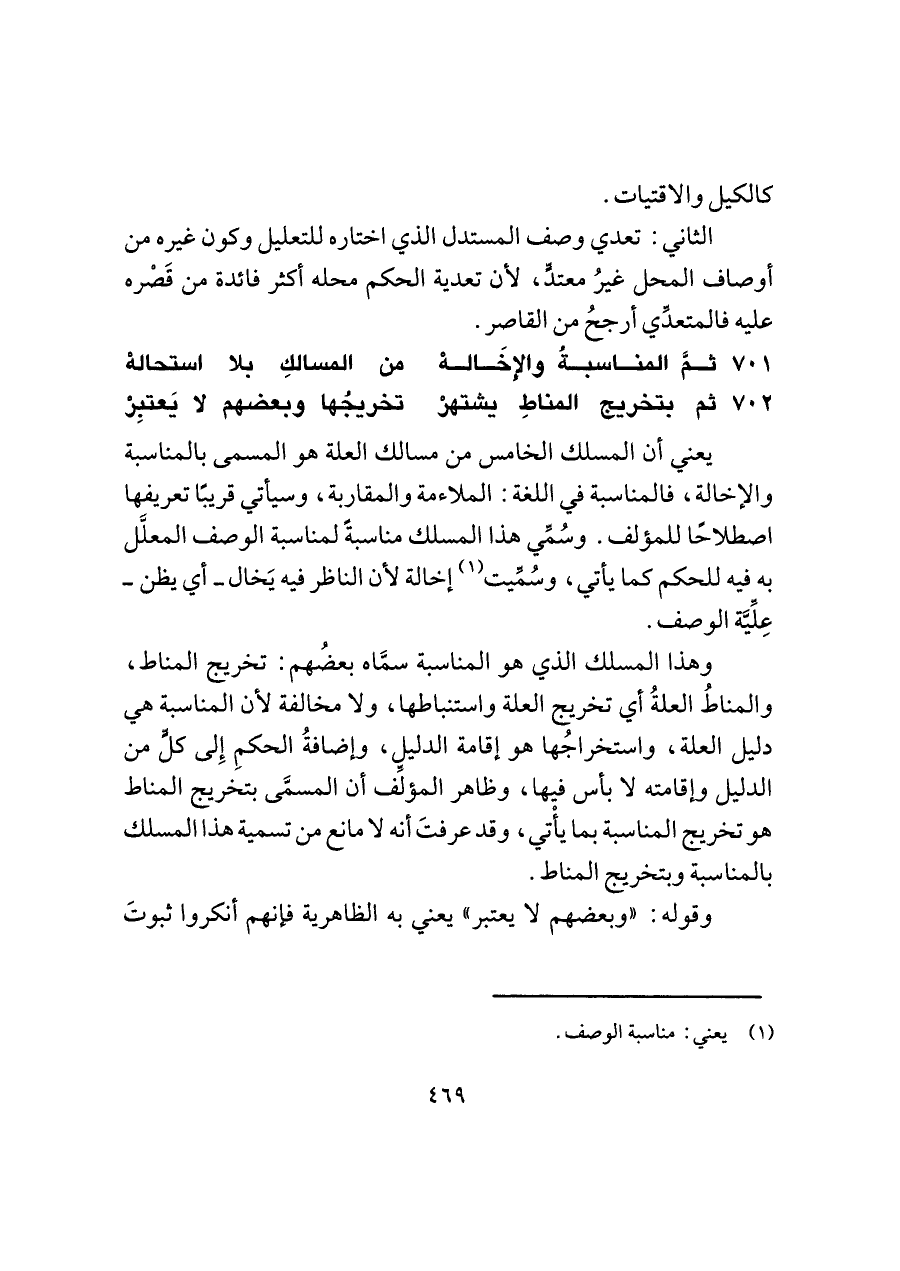 ٧٠١ - ثمَّ المناسبة والإخَاله ... من المسالكِ بلا استحاله