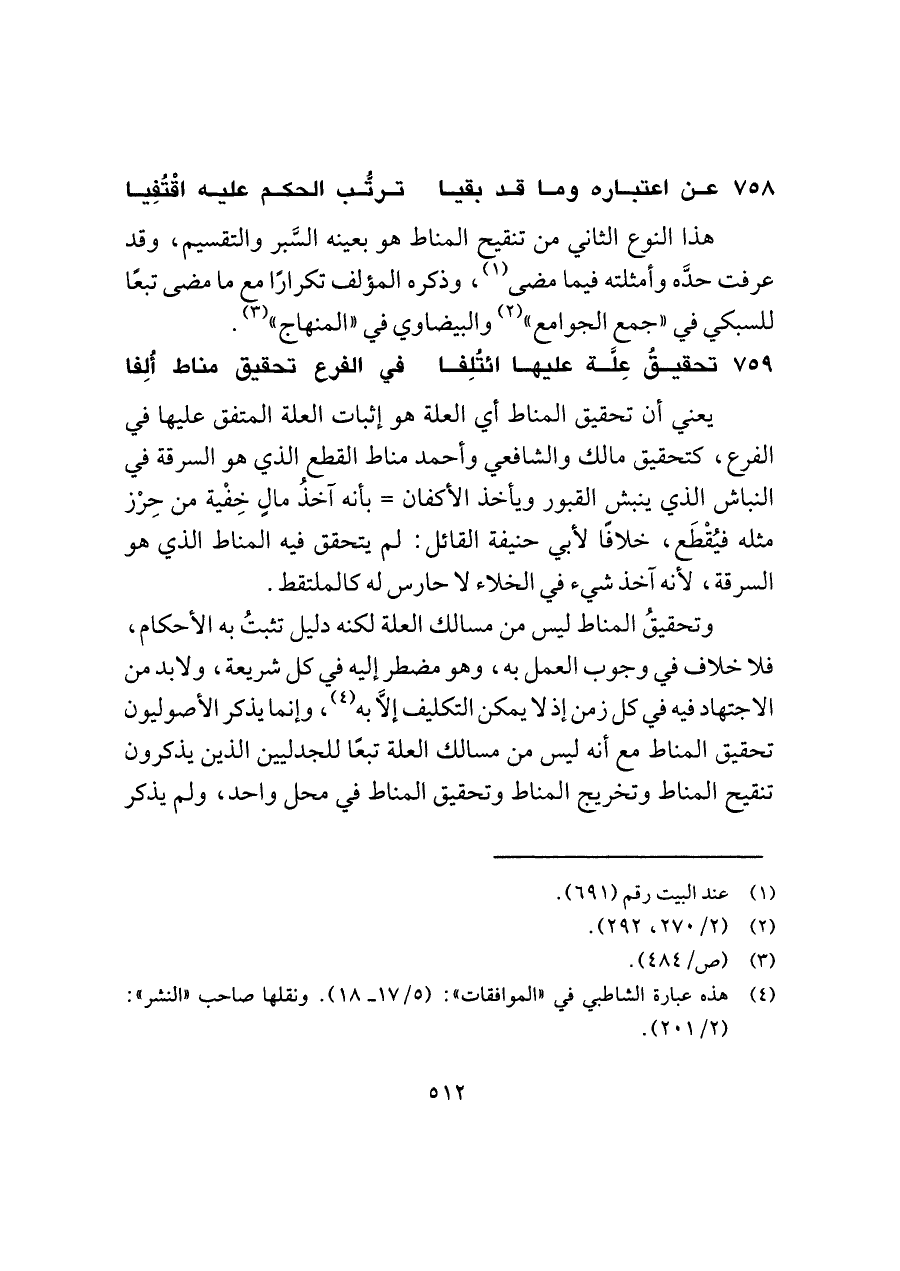 ٧٥٩ - تحقيق عِلَّة عليها ائتُلِفا ... في الفرع تحقيق مناط أُلِفا