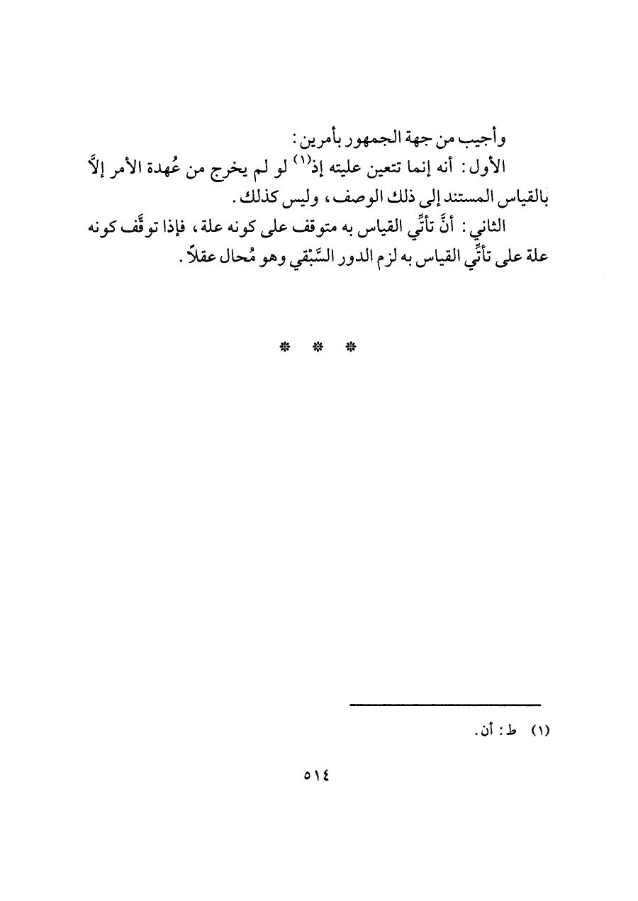 الثاني: أنَّ تأتِّي القياس به متوقف على كونه علة، فإذا توقَّف كونه علة على تأتِّي القياس به لزم الدور السَّبْقي وهو مُحال عقلًا.