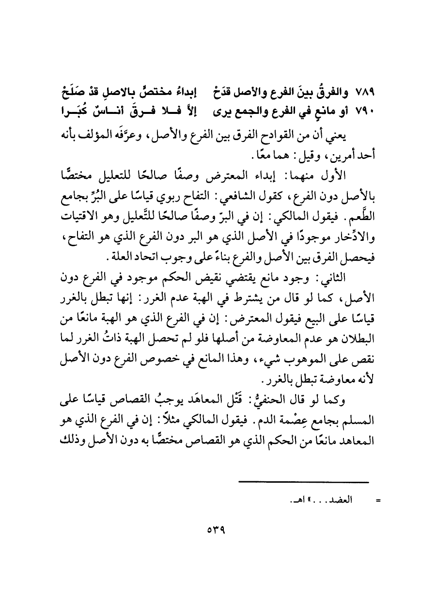 ٧٨٩ - والفرق بينَ الفرع والأصل قدَحْ ... إبداءً مختصٍّ بالأصلِ قدْ صَلَحْ