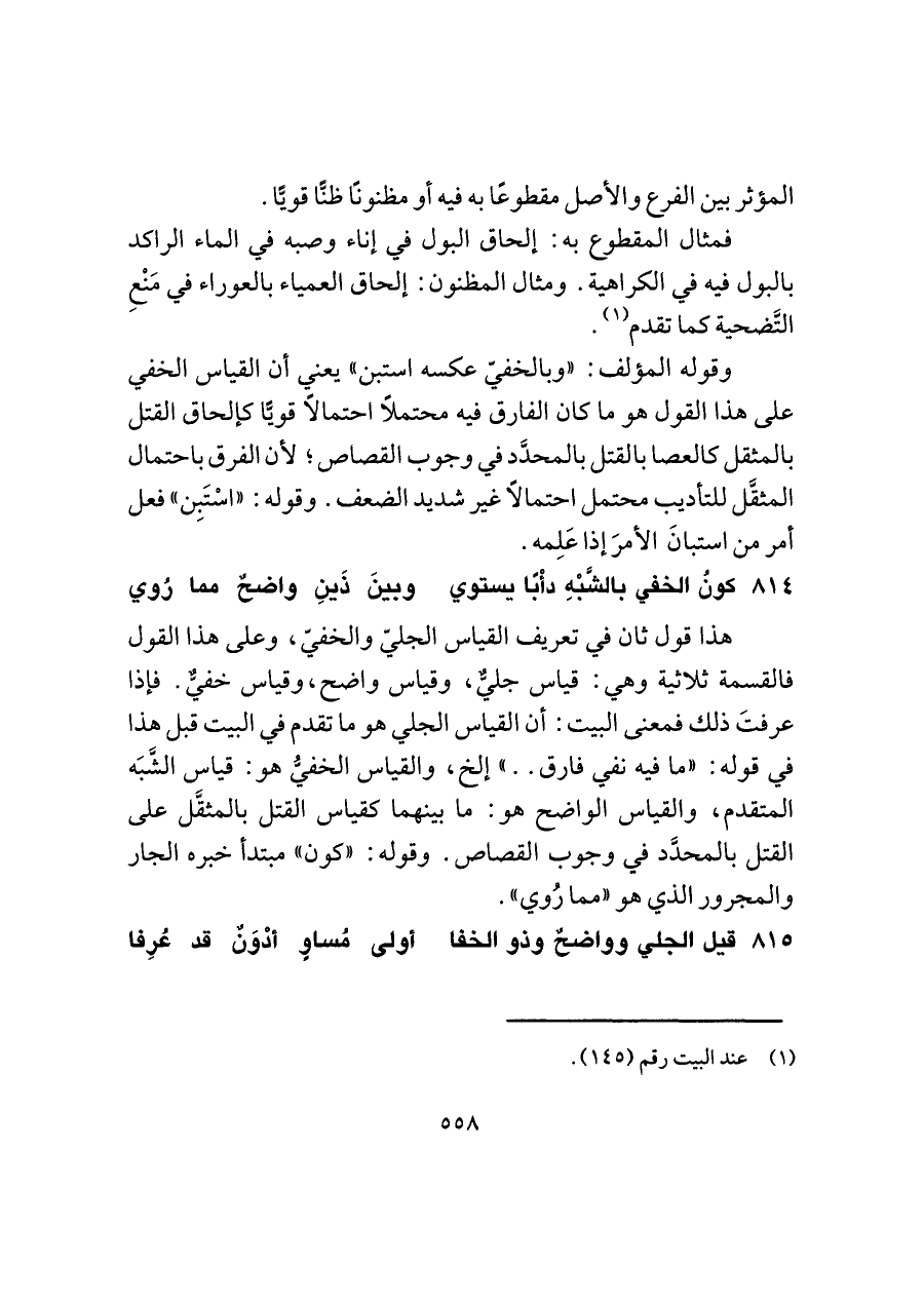 ٨١٤ - كونُ الخفي بالشَّبْهِ دأْبًا يستوي ... وبينَ ذَينِ واضحٌ مما رُوي