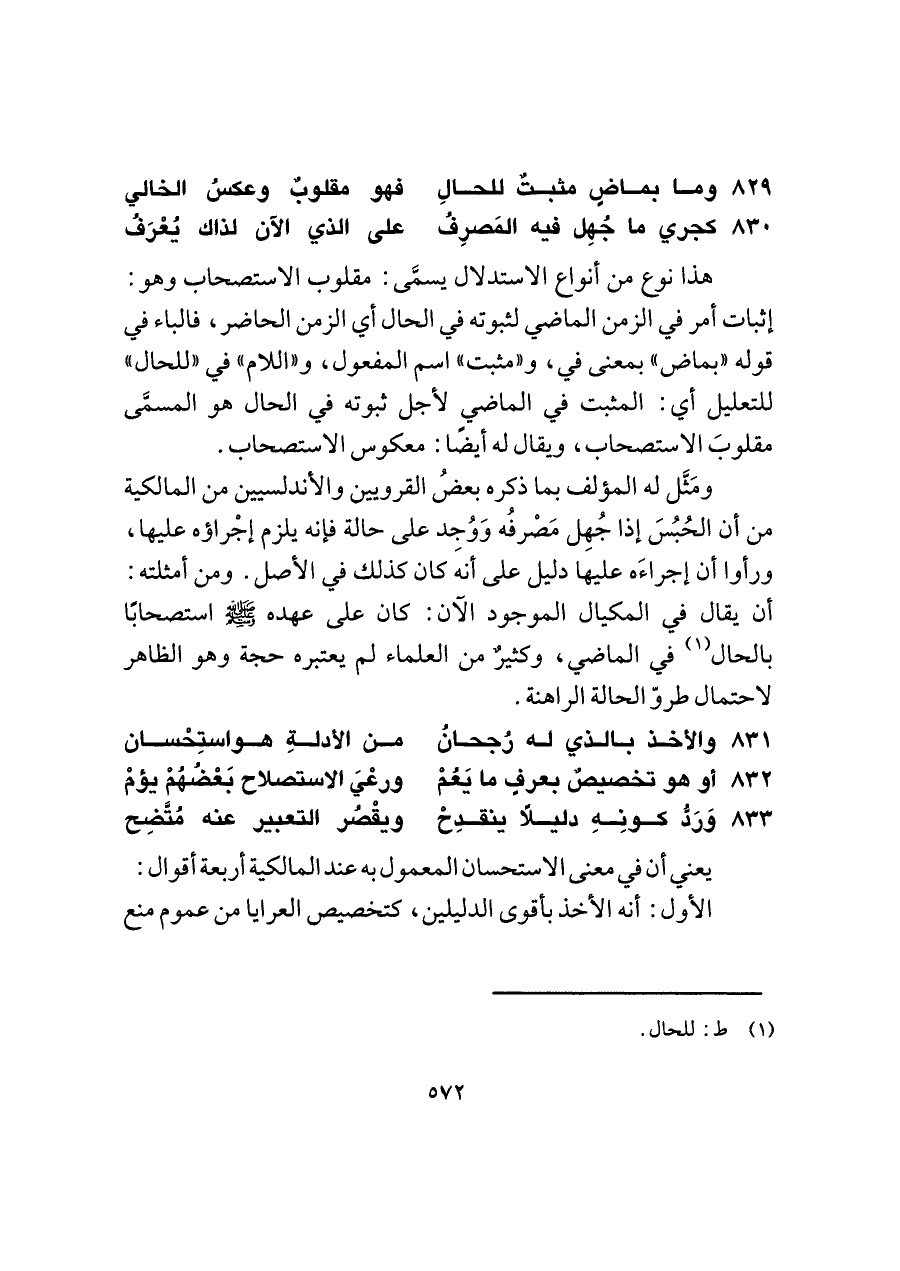 ٨٣١ - والأخذ بالذي له رُجحانُ ... من الأدلةِ هو استِحْسان