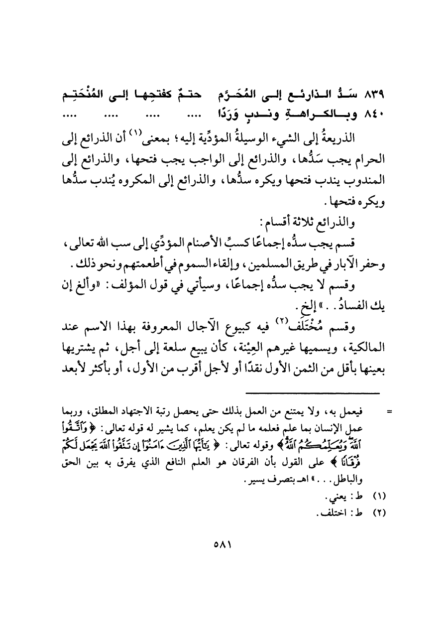 ٨٣٩ - سَدُّ الذارئع إلى المُحَرَّم ... حتمٌ كفتحِها إلي المُنْحَتِم