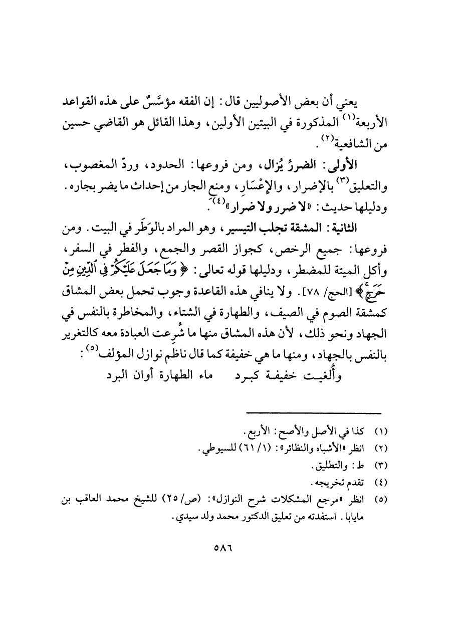 (¬٥) انظر "مرجع المشكلات شرح النوازل": (ص/ ٢٥) للشيخ محمد العاقب بن مايابا. استفدته من تعليق الدكتور محمد ولد سيدي.