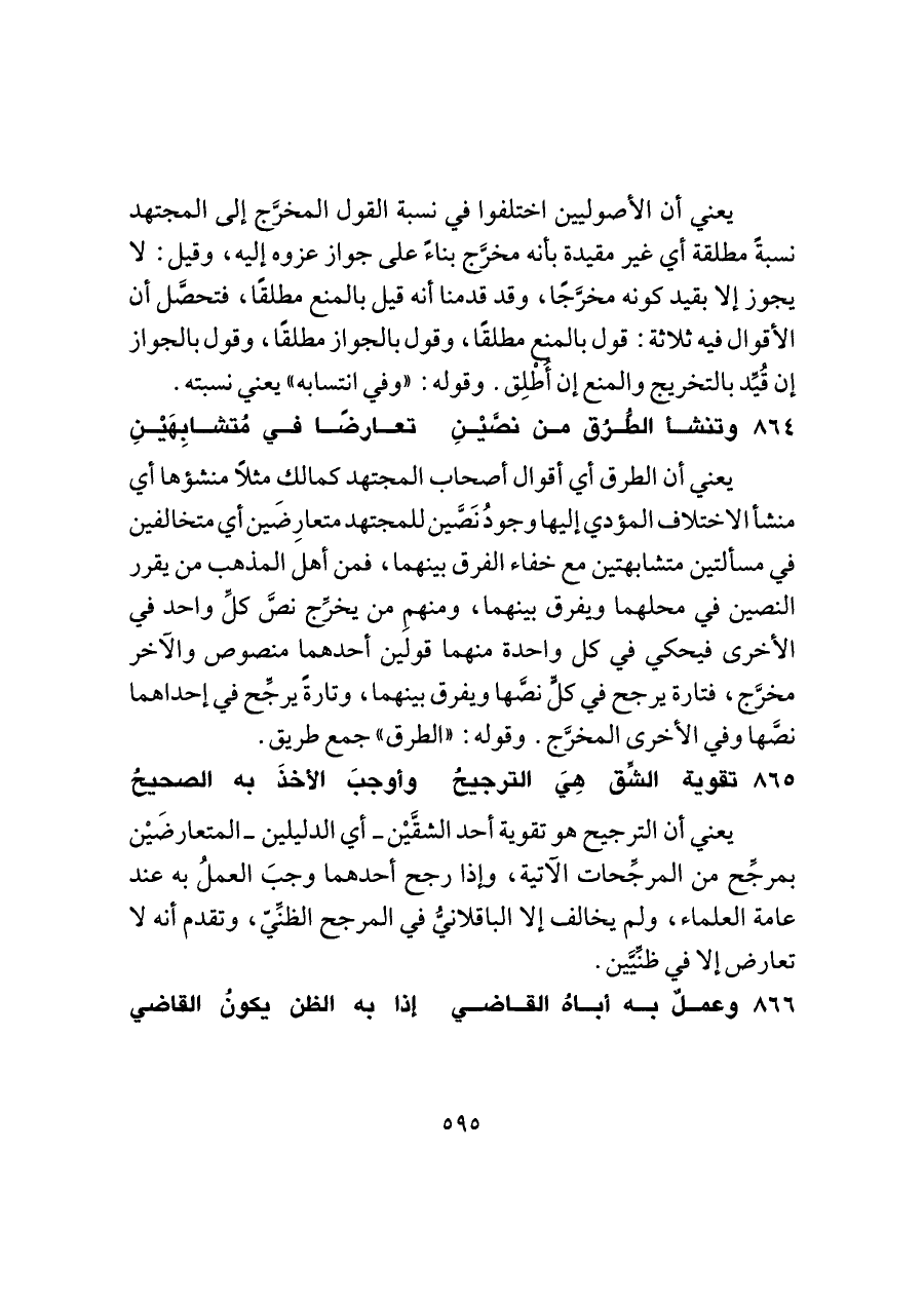 ٨٦٤ - وتنشأ الطُّرُق من نصَّيْنِ ... تعارضًا في مُتشابِهَيْنِ