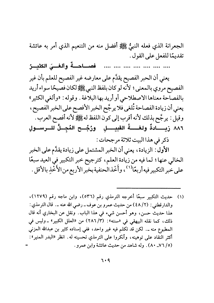 ٨٨٦ - زيادةٌ ولغةُ القبيلِ ... ورُجِّح المُجِلُّ للرسولِ