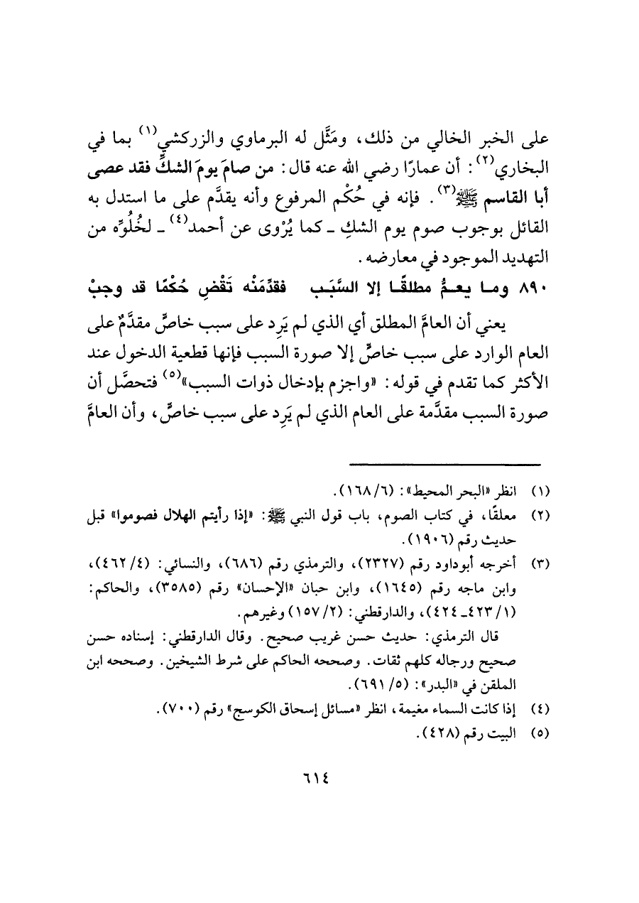 يعني أن العامَّ المطلق أي الذي لم يَرِد على سبب خاصٍّ مقدَّمٌ على العام الوارد على سبب خاصٍّ إلا صورة السبب فإنها قطعية الدخول عند الأكثر كما تقدم في قوله: "واجزم بإدخال ذوات السبب" (¬٥) فتحصَّل أن صورة السبب مقدَّمة على العام الذي لم يَرِد على سبب خاصٍّ، وأن العامَّ